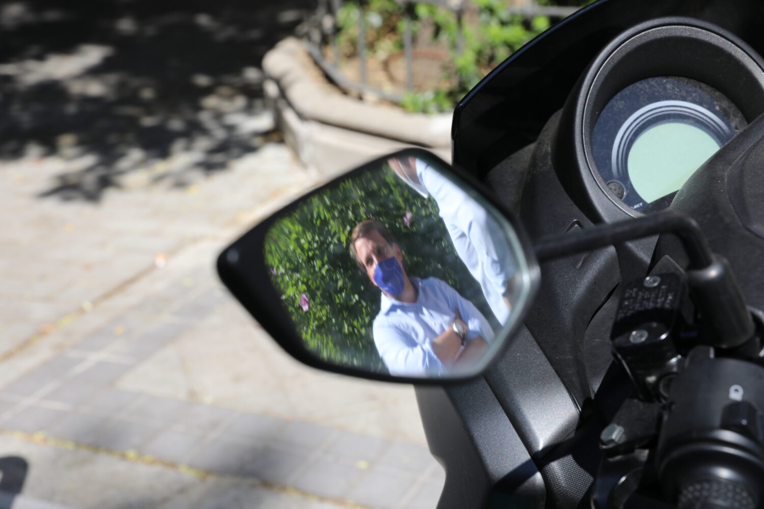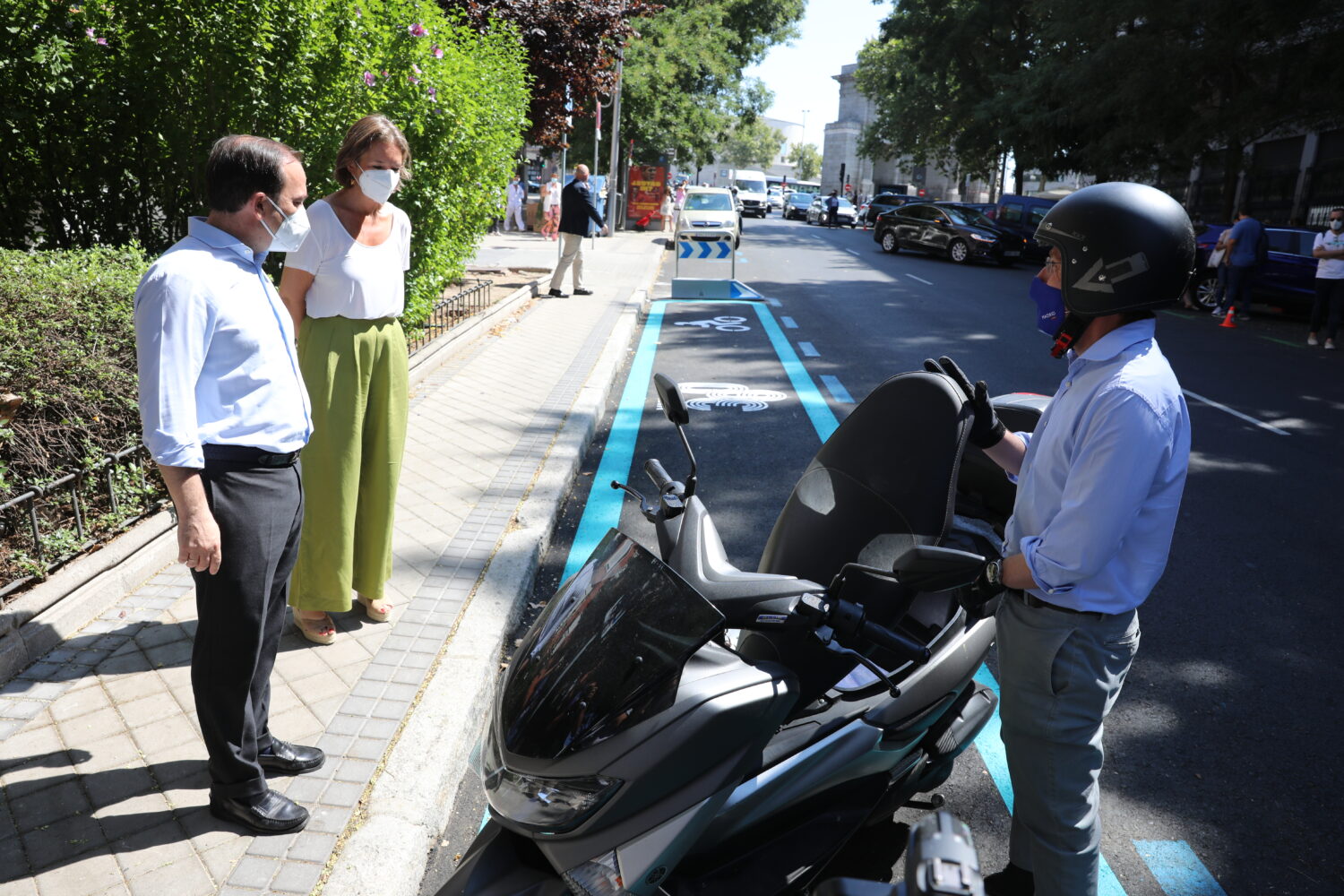 Acompañado por el delegado de Medio Ambiente y Movilidad, Borja Carabante, y la concejala de Arganzuela, Cayetana Hernández de la Riva, Almeida ha visitado el nuevo reservado que el Ayuntamiento de Madrid ha establecido en el número 4 del paseo de Pontones (Arganzuela), junto a la Puerta de Toledo y a escasos metros de la frontera con el distrito de Centro. Con una pintura diferenciada sobre la calzada, este `aparcamotos´ cuenta con espacio para ocho vehículos.