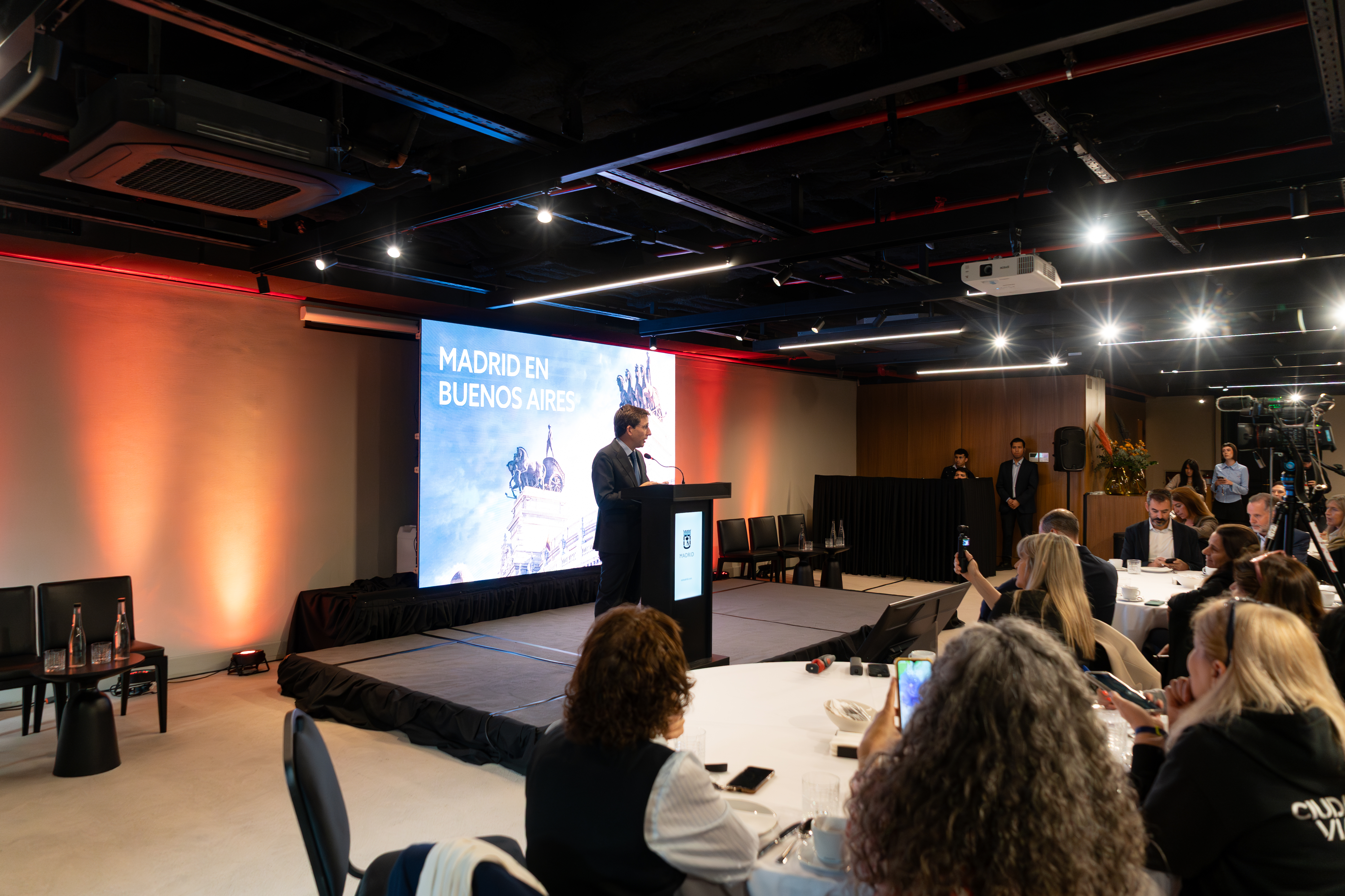 El alcalde de Madrid, José Luis Martínez-Almeida, ha encabezado hoy el encuentro profesional ‘Madrid en Buenos Aires’ que ha tenido lugar en la capital argentina, dentro del plan de promoción internacional del Ayuntamiento de Madrid para reforzar el posicionamiento de la ciudad como destino turístico de referencia en Europa para el mercado argentino. El acto ha reunido a representantes institucionales de ambos consistorios, así como del sector turístico, como el director corporativo de Iberia, Juan Cierco; el director ejecutivo de Visit Buenos Aires, Valentín Díaz, y la directora general de Despegar, Paula Cristi.