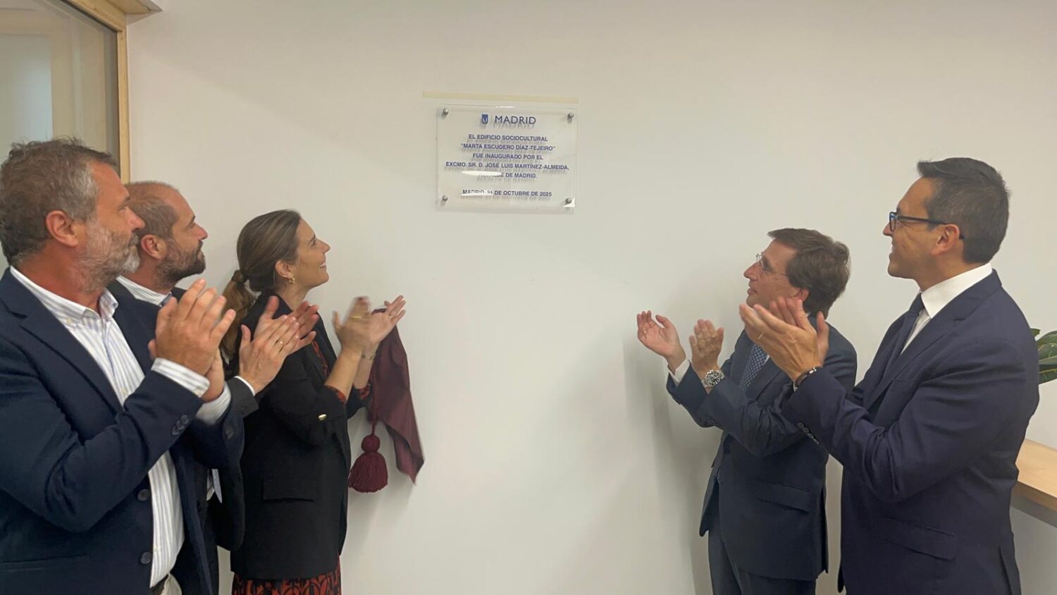 El alcalde de Madrid, José Luis Martínez-Almeida, junto al concejal de Villaverde, Orlando Chacón, ha inaugurado esta tarde el Edificio Sociocultural Marta Escudero Díaz-Tejeiro, ubicado en la calle del Calcio, 1. Este espacio alberga servicios orientados al público infantil, familiar y juvenil como un nuevo centro sociocultural, una sala de estudio y la Biblioteca Pública Municipal Francisco Umbral, inaugurada el pasado 20 de junio. Durante el acto, el alcalde ha descubierto una placa conmemorativa junto a los tres hijos de Escudero.