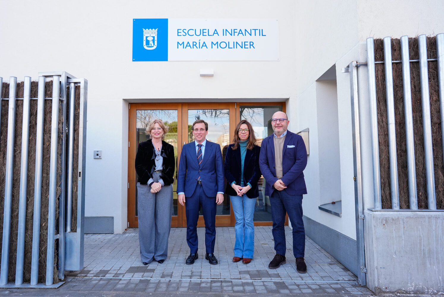 El alcalde de Madrid, José Luis Martínez-Almeida, acompañado por la delegada de Obras y Equipamientos, Paloma García Romero; el delegado de Políticas Sociales, Familia e Igualdad, José Fernández, y la concejala de Tetuán, Paula Gómez-Angulo, ha inaugurado esta mañana la Escuela Infantil María Moliner, que aporta 82 nuevas plazas para la etapa educativa más temprana de los niños del distrito y supone la quinta dotación de estas características con que cuenta Tetuán. El centro toma el nombre de la filóloga, bibliotecaria y lexicógrafa María Moliner, que fue vecina del barrio de Cuatro Caminos, por decisión del Pleno del distrito del pasado mes de enero. Una decisión más que acertada para el alcalde ya que el nombre “conecta con lo que debe de ser el espíritu de la educación”.