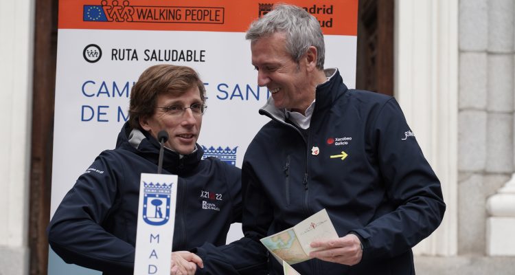 El Ayuntamiento de Madrid ha estrenado hoy una ruta saludable que recorre el Camino de Santiago a su paso por la capital, un recorrido de unos 19 kilómetros, dividido en cuatro tramos, que arranca en la plaza de Santiago y finaliza en El Goloso y que han inaugurado el alcalde de la ciudad, José Luis Martínez-Almeida, y el presidente de la Xunta de Galicia, Alfonso Rueda. En el acto también han participado la delegada de Seguridad y Emergencias y portavoz municipal, Inmaculada Sanz, y el concejal del distrito de Centro, José Fernández.