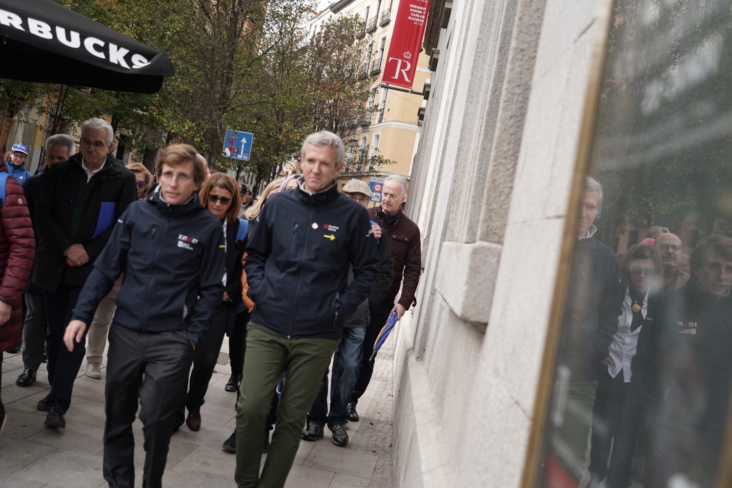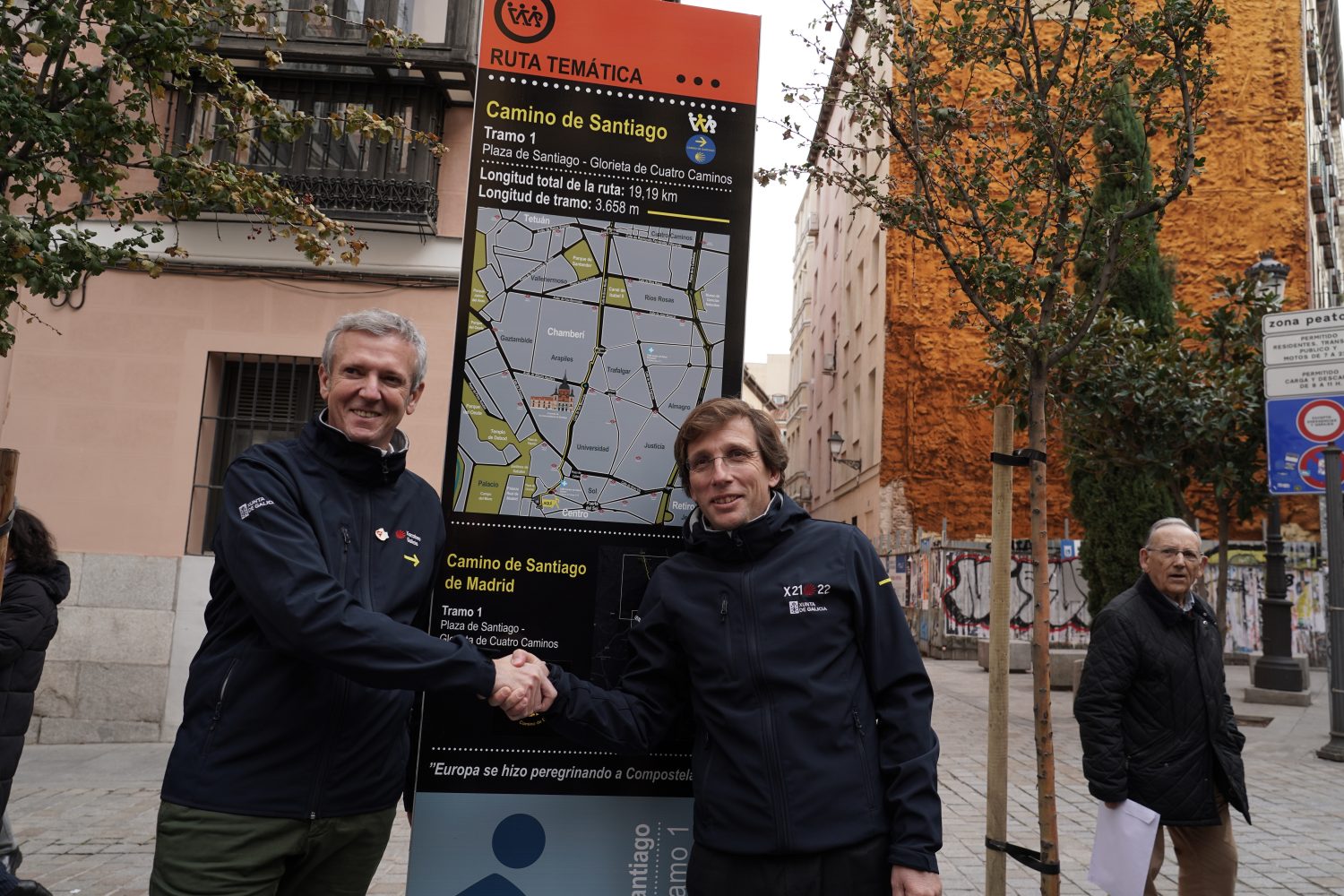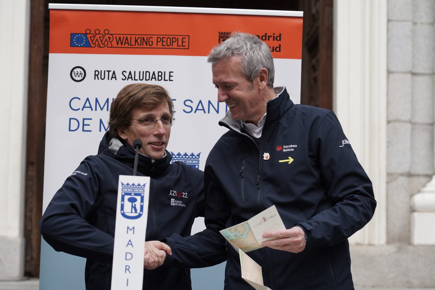 El Ayuntamiento de Madrid ha estrenado hoy una ruta saludable que recorre el Camino de Santiago a su paso por la capital, un recorrido de unos 19 kilómetros, dividido en cuatro tramos, que arranca en la plaza de Santiago y finaliza en El Goloso y que han inaugurado el alcalde de la ciudad, José Luis Martínez-Almeida, y el presidente de la Xunta de Galicia, Alfonso Rueda. En el acto también han participado la delegada de Seguridad y Emergencias y portavoz municipal, Inmaculada Sanz, y el concejal del distrito de Centro, José Fernández.