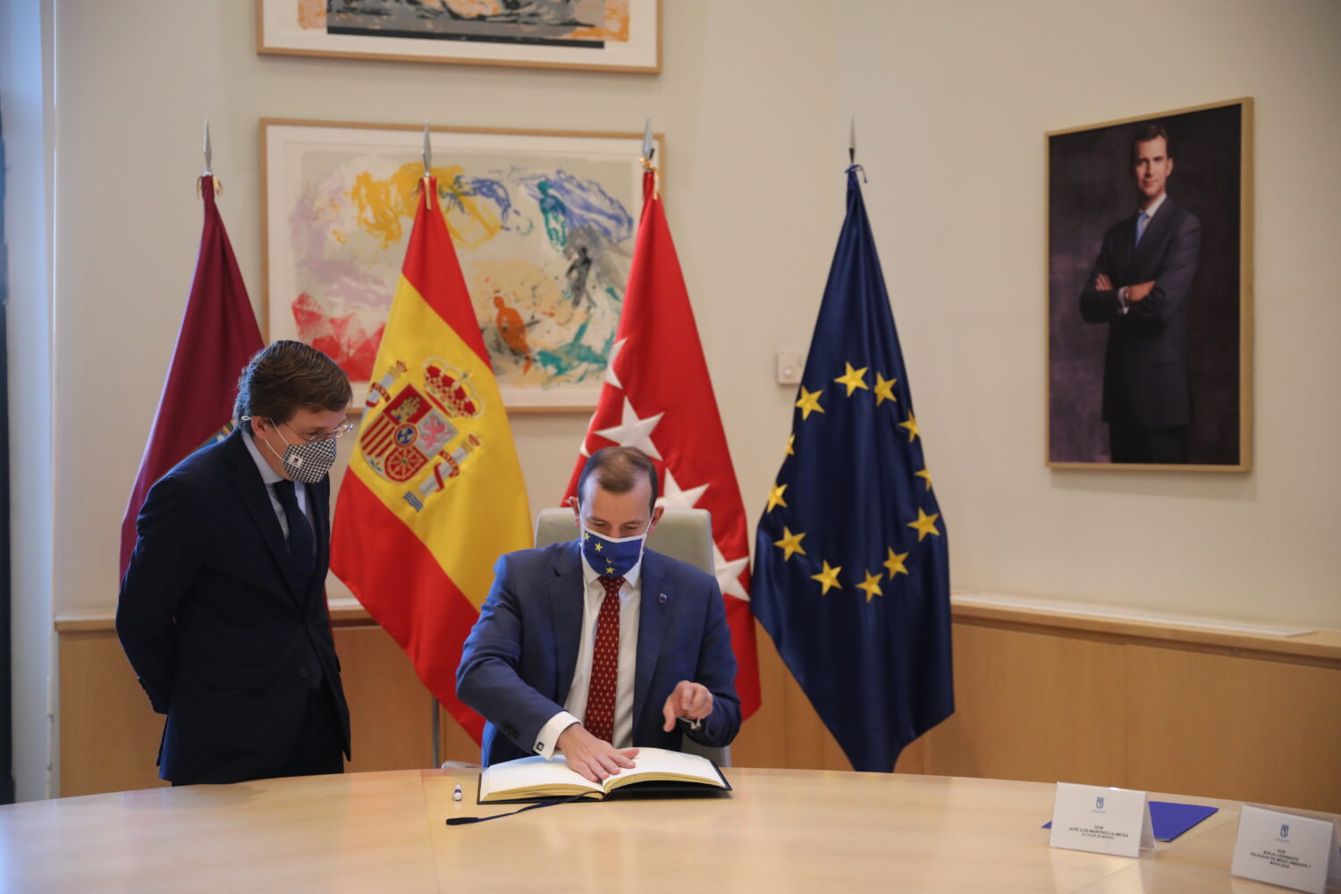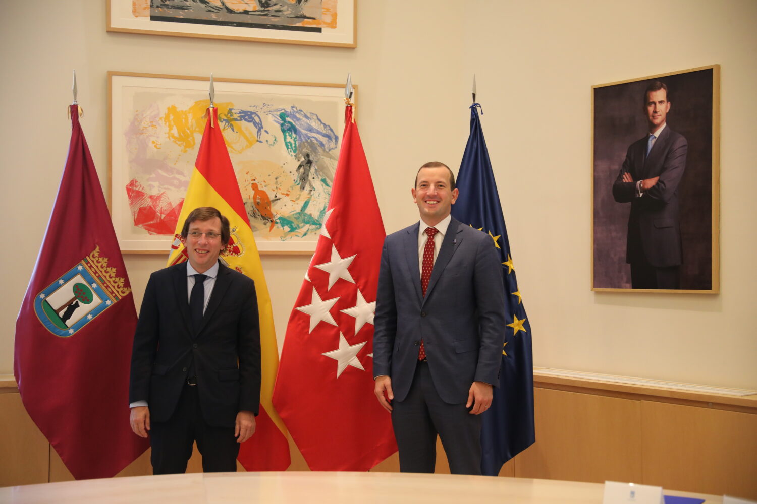 Reunión del alcalde de Madrid, José Luis Martínez-Almeida, con el comisario europeo de Medio Ambiente, Océanos y Pesca, Virginijus Sinkevicius, este viernes, en el palacio de Cibeles