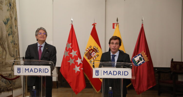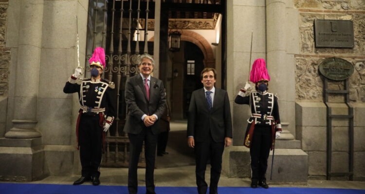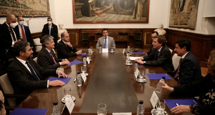 El alcalde de Madrid, José Luis Martínez-Almeida, ha mantenido una reunión de trabajo con el presidente de la República de Ecuador, Guillermo Lasso, enmarcada en los actos de la XIX Asamblea General de la Unión de Ciudades Capitales Iberoamericanas (UCCI) que se ha celebrado hoy en Madrid, tras la que ha destacado que a España y a Ecuador les une “un pasado común y unas tradiciones que perviven” y se ha comprometido a seguir contribuyendo al “crecimiento de la amistad y de los lazos de hermandad entre ambos países”.