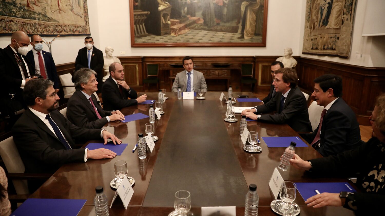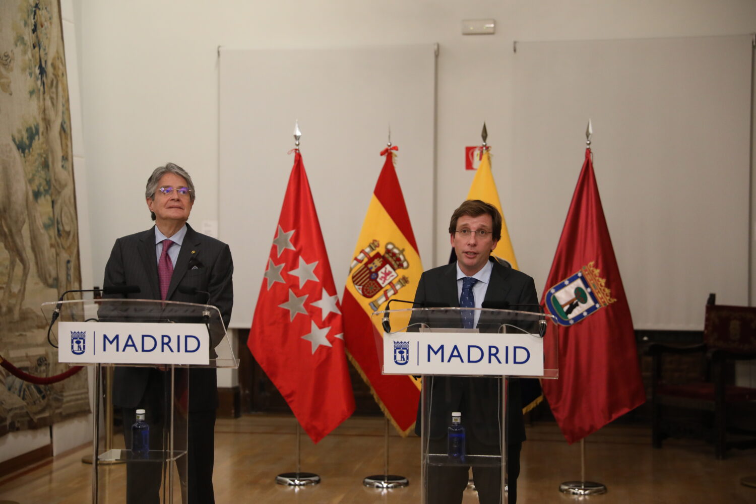 El alcalde de Madrid, José Luis Martínez-Almeida, ha mantenido una reunión de trabajo con el presidente de la República de Ecuador, Guillermo Lasso, enmarcada en los actos de la XIX Asamblea General de la Unión de Ciudades Capitales Iberoamericanas (UCCI) que se ha celebrado hoy en Madrid, tras la que ha destacado que a España y a Ecuador les une “un pasado común y unas tradiciones que perviven” y se ha comprometido a seguir contribuyendo al “crecimiento de la amistad y de los lazos de hermandad entre ambos países”.