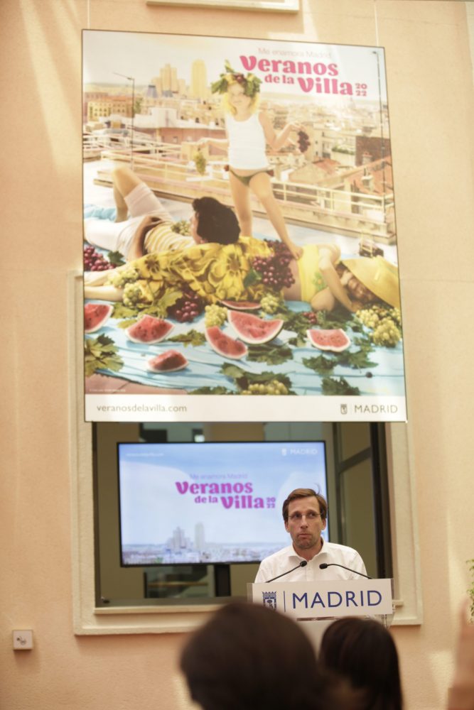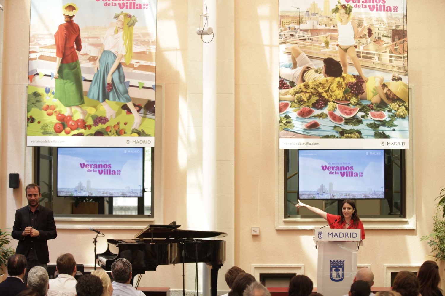 “Es cierto que en Madrid no hay playa, en Madrid nuestra playa son los Veranos de la Villa”, ha dicho el alcalde durante la presentación de la programación cultural veraniega, que acercará actividades de las más variadas disciplinas a madrileños y visitantes “en sitios especialmente extraordinarios de nuestra ciudad como el patio de Conde Duque, la Fundación Carlos de Amberes o la renovada plaza de España”. “Fecha referente y compromiso ineludible para todos”, el alcalde ha animado a vivir los Veranos de la Villa disfrutando de la cultura, “seña de identidad que nos caracteriza como ciudad” porque en la capital “la cultura está abierta los 365 días del año” y es uno de los motivos por los que “Madrid enamora”.