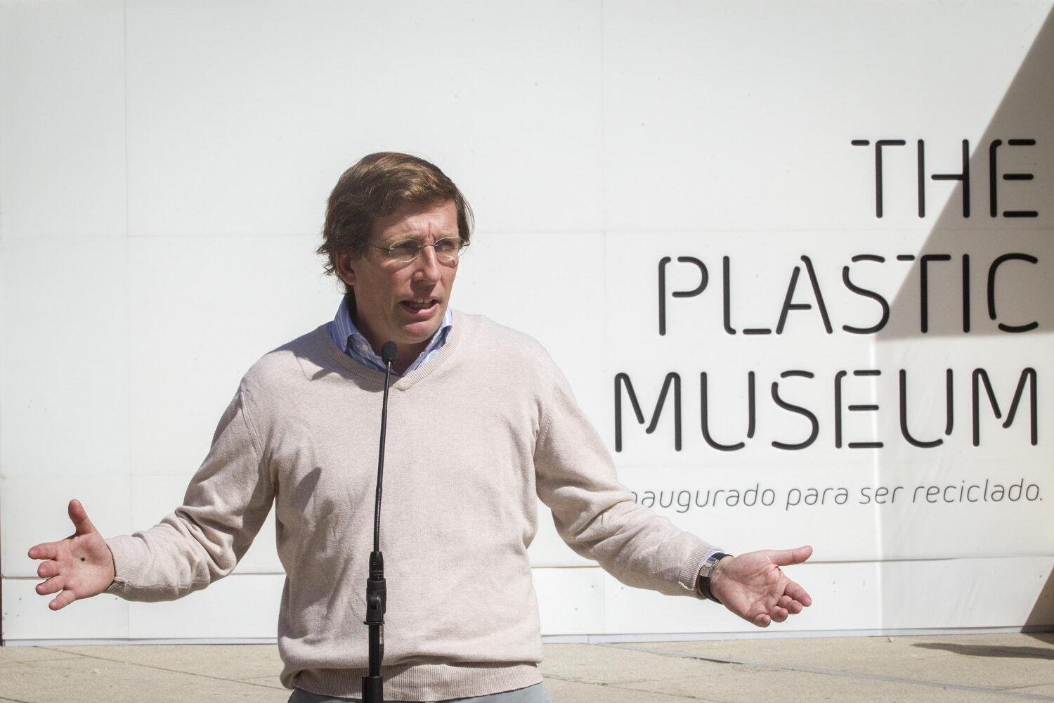 El alcalde de Madrid, José Luis Martínez-Almeida, ha participado esta mañana junto al delegado de Medio Ambiente y Movilidad, Borja Carabante, en la inauguración del Museo del Plástico, una instalación efímera construida frente al Museo Reina Sofía con materiales plásticos y que el próximo 17 de mayo, con motivo de la celebración del Día Mundial del Reciclaje, será completamente reutilizada.