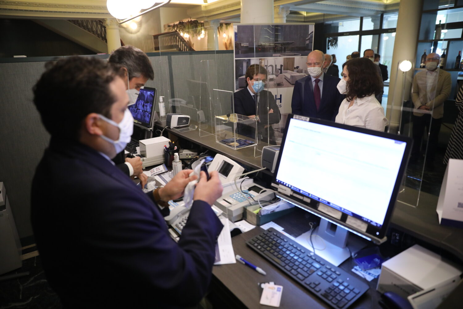 Almeida y Díaz Ayuso han tenido ocasión de probar las nuevas herramientas para el registro de llegada y salida de los clientes y han comprobado los diferentes protocolos de actuación en materia de higiene y de distanciamiento social. El alcalde ha agradecido las medidas de seguridad que el hotel ha puesto al servicio de los ciudadanos y ha animado a todos a venir a Madrid porque lo van a hacer en las mejores condiciones de seguridad.