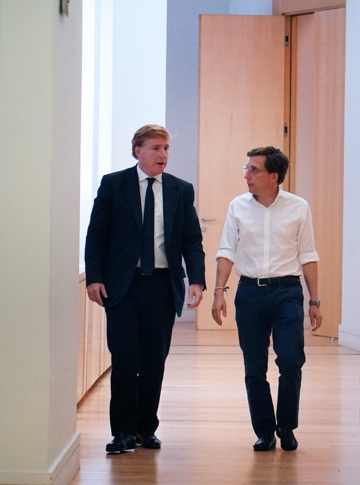 En este encuentro, ambos mandatarios han puesto en común diferentes puntos de vista sobre la relevancia que supone para la capital de España ser un centro mundial de transportes, al disponer de uno de los aeropuertos internacionales más importantes de Europa, una amplia red de ferrocarril de alta velocidad, además de grandes comunicaciones por carretera. /