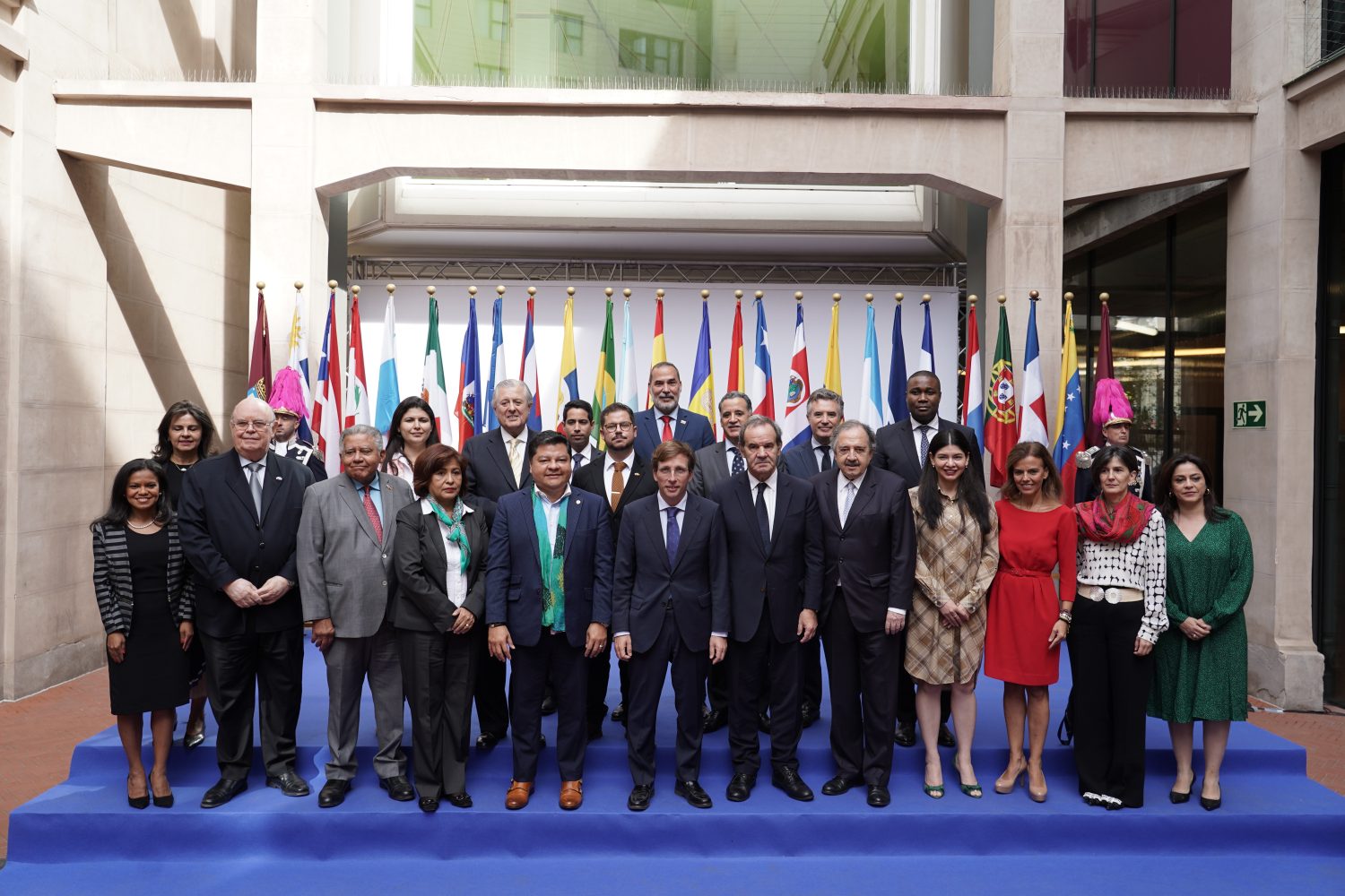 El alcalde de Madrid, José Luis Martínez-Almeida, ha apelado a la historia común y la unidad de los pueblos iberoamericanos y ha ofrecido a Madrid como la capital de la Hispanidad donde todas las personas puedan realizar sus sueños, durante la celebración del acto conmemorativo organizado por el Ayuntamiento y la Unión de Ciudades Capitales Iberoamericanas (UCCI), con motivo de la Fiesta Nacional, que ha contado con la presencia de embajadores y representantes del cuerpo diplomático iberoamericano acreditado en Madrid.