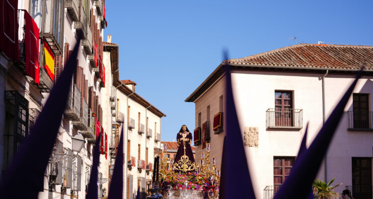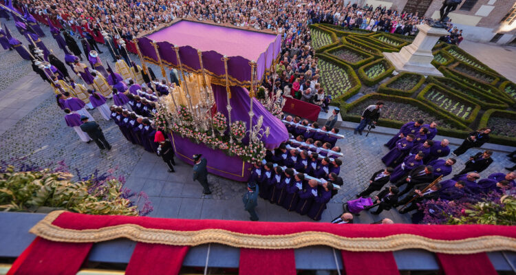 Fundada por cofrades sevillanos residentes en Madrid, esta hermandad mantiene una estrecha vinculación con la tradición andaluza y transcurre por algunas de las principales calles del centro. A lo largo de su recorrido, se han interpretado dos saetas: la primera, a cargo de Saray Muñoz, desde el Hotel Moderno, y la segunda, de Ismael de la Rosa, desde el balcón de la Real Casa de Correos. /