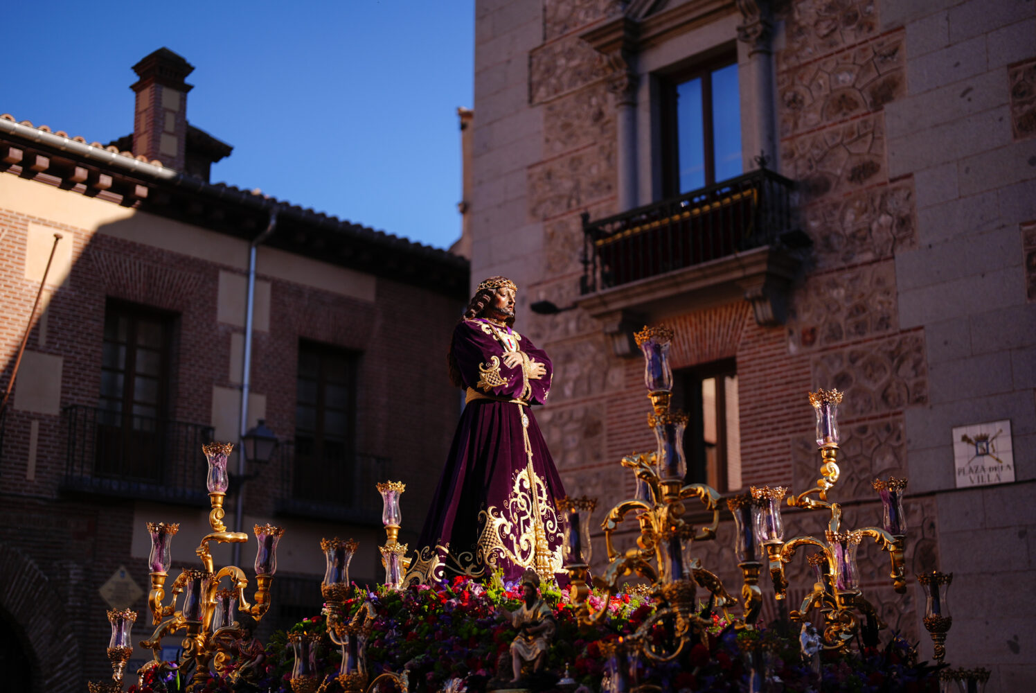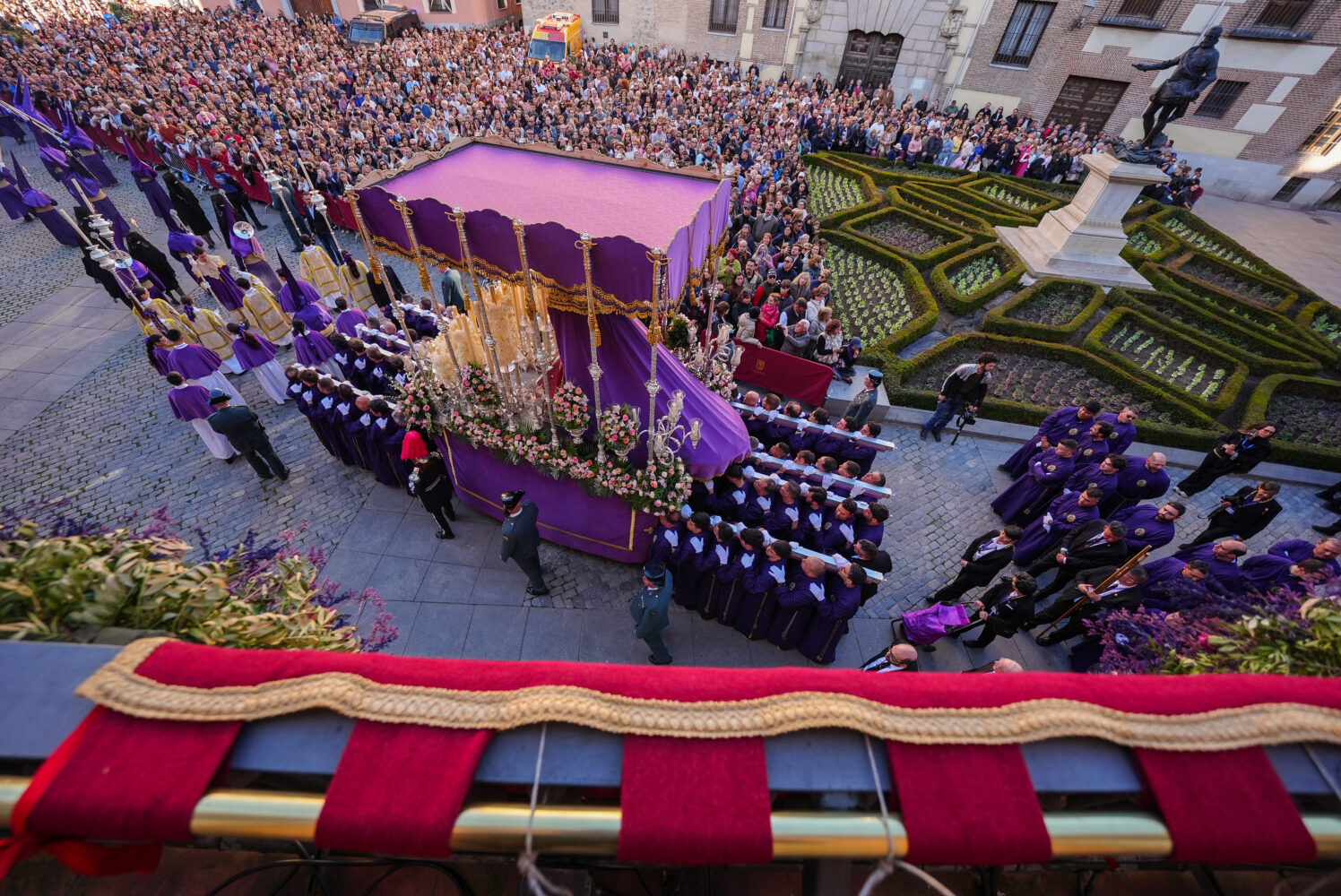 La procesión, con salida y llegada en la iglesia de San Pedro el Viejo, ha contado con la interpretación de una saeta a cargo de Ismael de la Rosa desde el balcón de la Casa de la Villa. La hermandad, cuyos orígenes se remontan a 1940, custodia una de las imágenes más antiguas de Madrid, atribuida a un autor anónimo del siglo XVIII y documentada en la parroquia desde 1756.