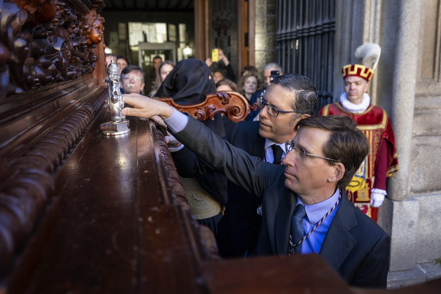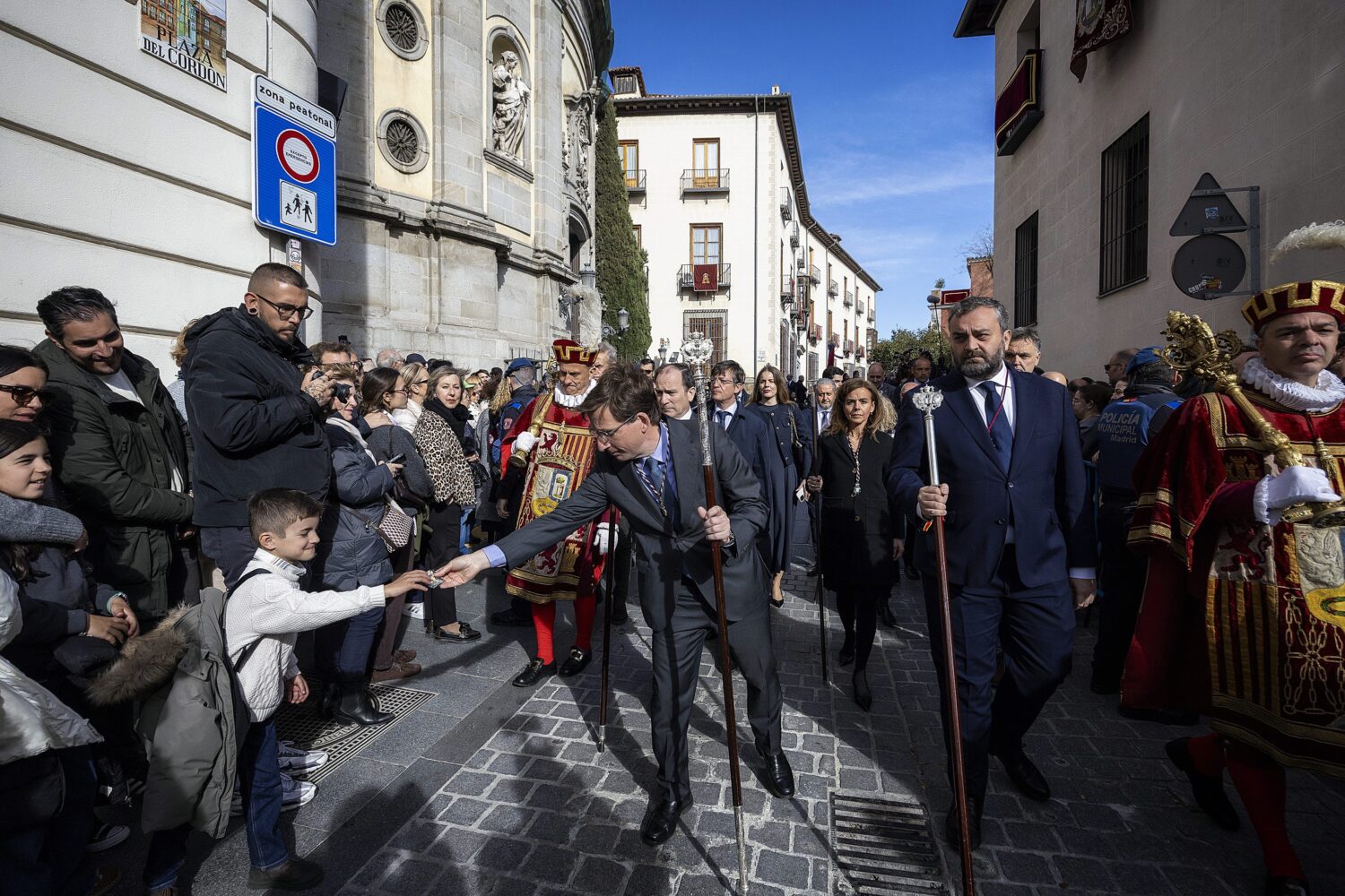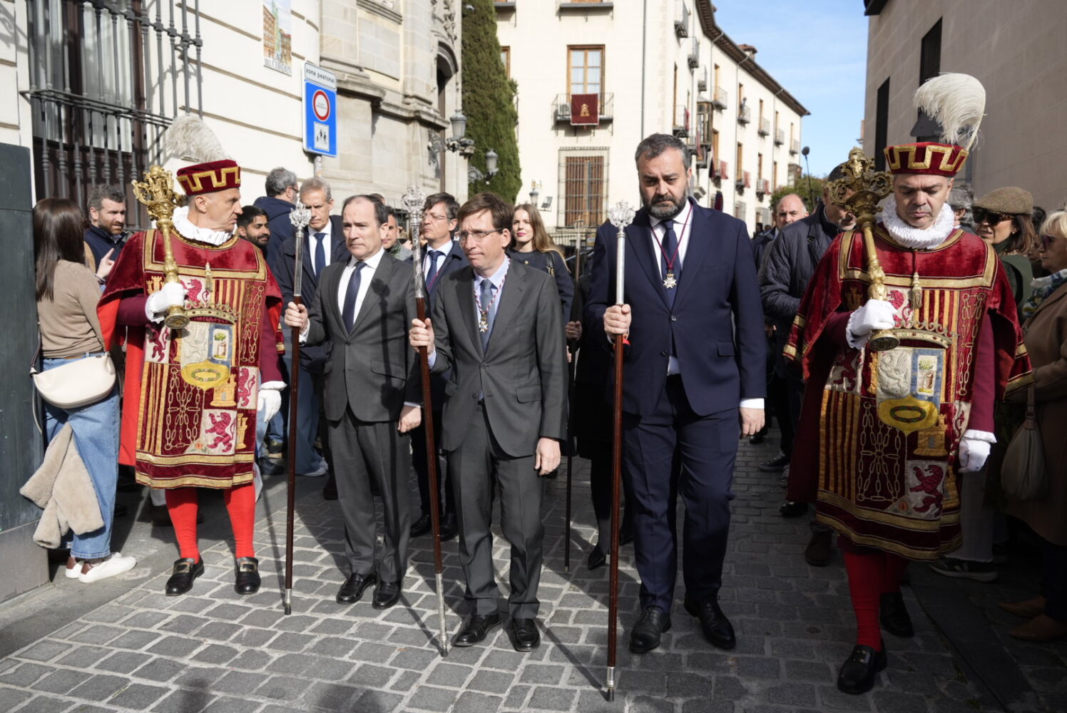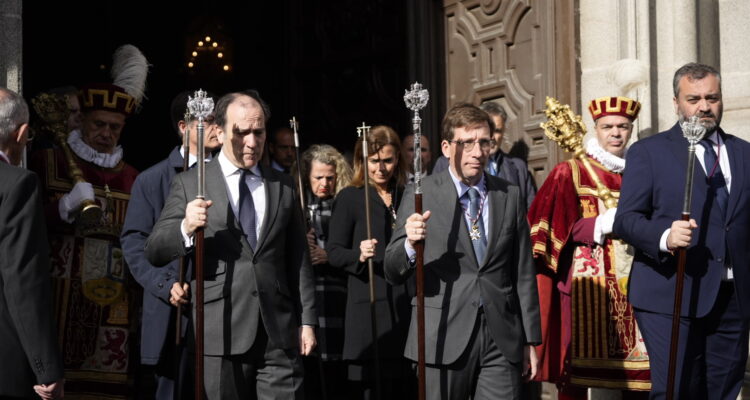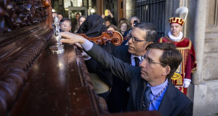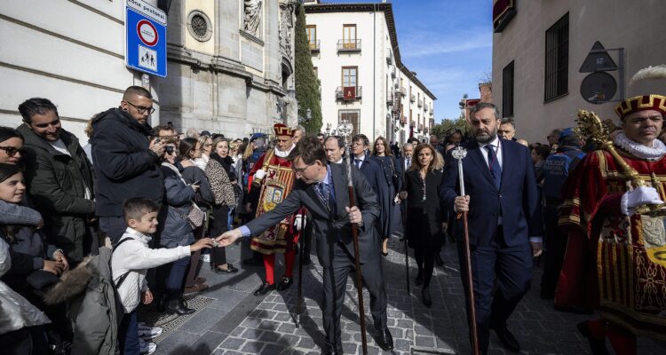 Acompañado del delegado de Urbanismo, Medio Ambiente y Movilidad, Borja Carabante; la concejala delegada de Turismo, Almudena Maíllo, y el concejal de Centro, Carlos Segura, Almeida ha participado en el cortejo procesional que ha salido de la Basílica Pontificia de San Miguel para recorrer la calle del Cordón, la plaza de la Villa, la calle Mayor, la plaza Mayor, la Puerta del Sol, la Colegiata de San Isidro y la plaza de Puerta Cerrada, entre otros emplazamientos, antes de volver al punto de partida.