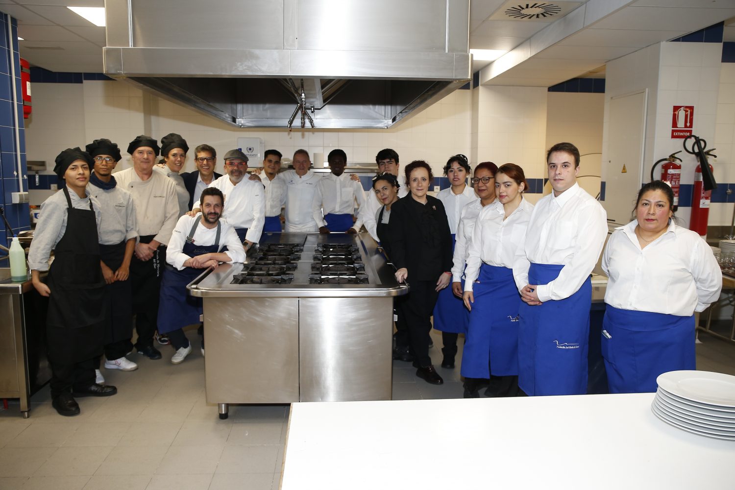 Alberto Serrano ha acudido al centro Puerta Abierta donde han cocinado los chefs Fernando del Cerro y Javier Aranda