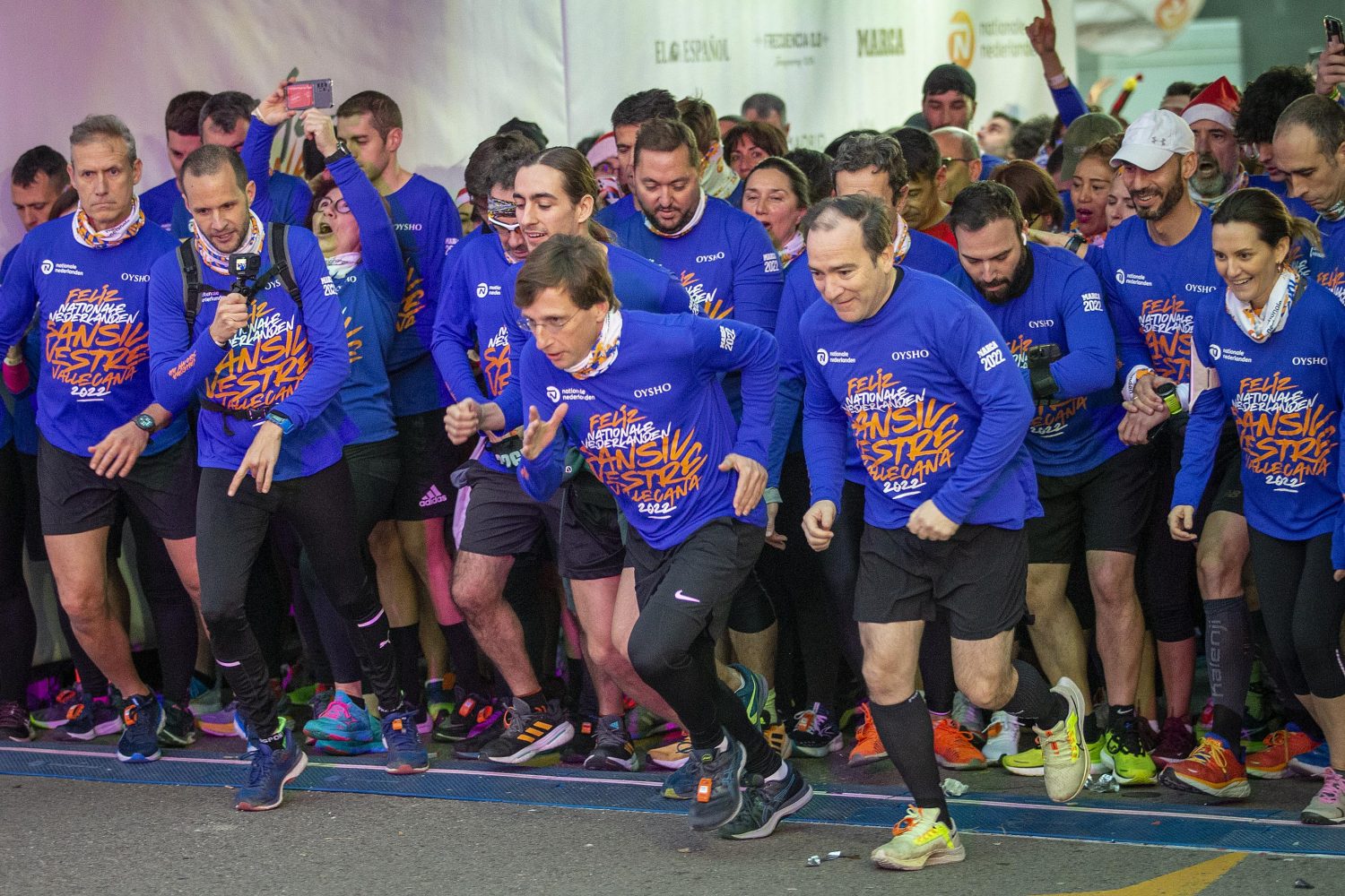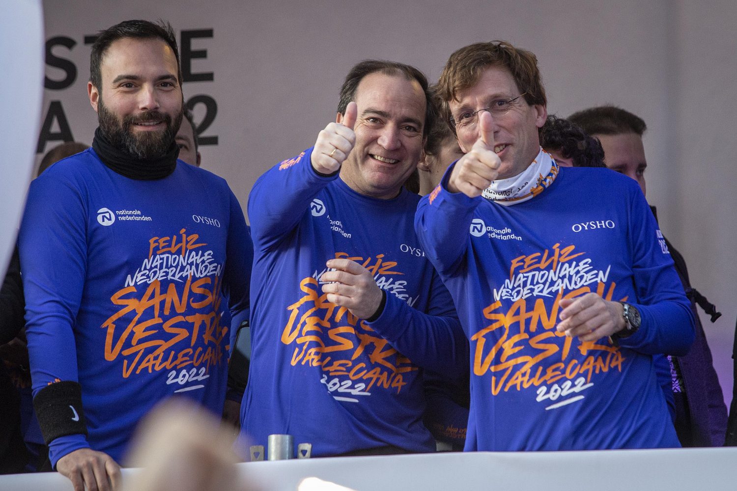 El alcalde de Madrid, José Luis Martínez-Almeida, ha dado a las 17:00 horas la salida a la primera oleada de la 58ª edición de la Carrera Nationale-Nederlanden San Silvestre Vallecana 2022, junto a la vicealcaldesa, Begoña Villacís; los delegados de Medio Ambiente y Movilidad, Borja Carabante, y de Desarrollo Urbano, Mariano Fuentes, y los concejales delegados de Deporte, Sofía Miranda, y de Innovación y Emprendimiento, Ángel Niño.