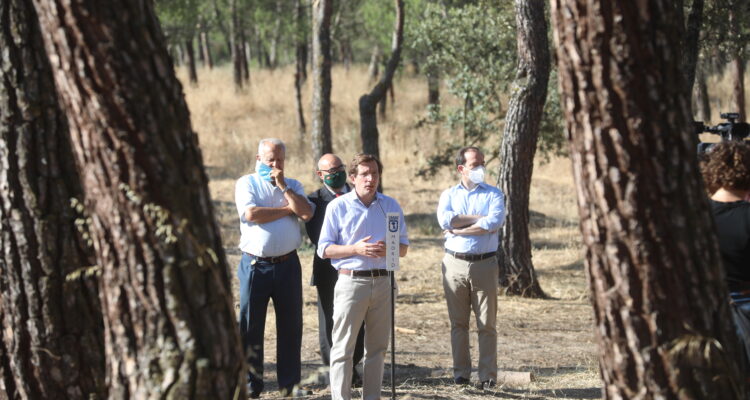Acompañado por el delegado de Medio Ambiente y Movilidad, Borja Carabante, Almeida ha dado a conocer en este parque histórico el Plan de Recuperación del Arbolado del Ayuntamiento de Madrid. Se trata de un decálogo de actuaciones que utilizarán de base las recomendaciones que el Consejo Asesor del Arbolado ha plasmado en su informe final, un documento que servirá de guía científica a los servicios municipales en todos los planes para el arbolado de la capital que se realicen a medio y largo plazo.