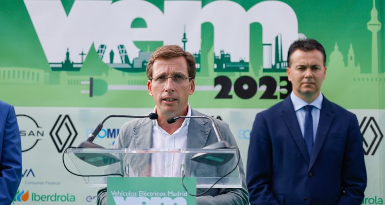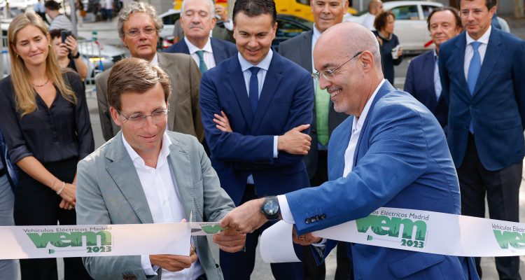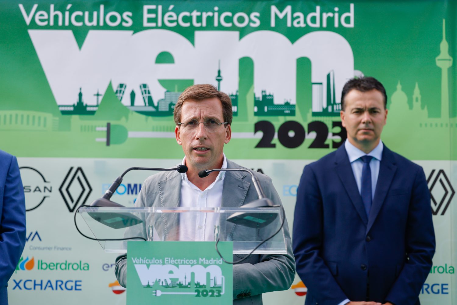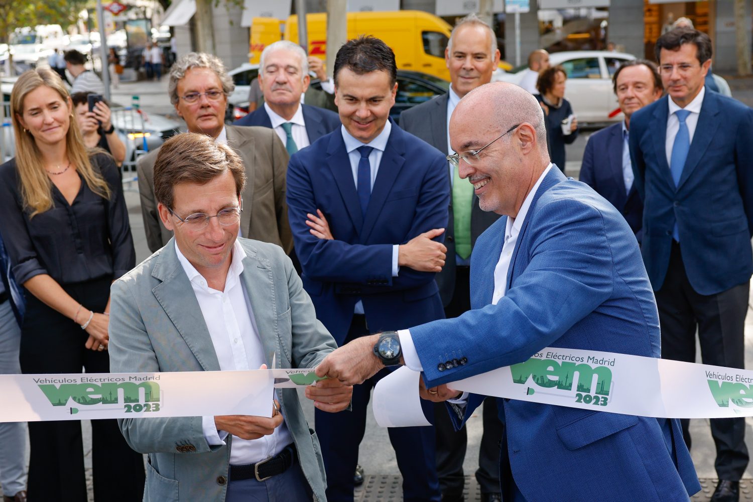 El alcalde de Madrid, José Luis Martínez-Almeida, acompañado por el delegado de Urbanismo, Medio Ambiente y Movilidad, Borja Carabante, ha participado hoy en la inauguración de la octava edición de la Feria del Vehículo Eléctrico de Madrid, VEM2023, que se celebra hasta el domingo en la plaza de Colón, donde ha reafirmado el “fuerte compromiso” del Ayuntamiento con la movilidad sostenible. Asimismo, Almeida ha destacado que las políticas de sostenibilidad ambiental, “como garantía de la mejor calidad de vida de todos los ciudadanos”, junto a las políticas de movilidad, forman dos de los principales retos de las grandes ciudades en el mundo.