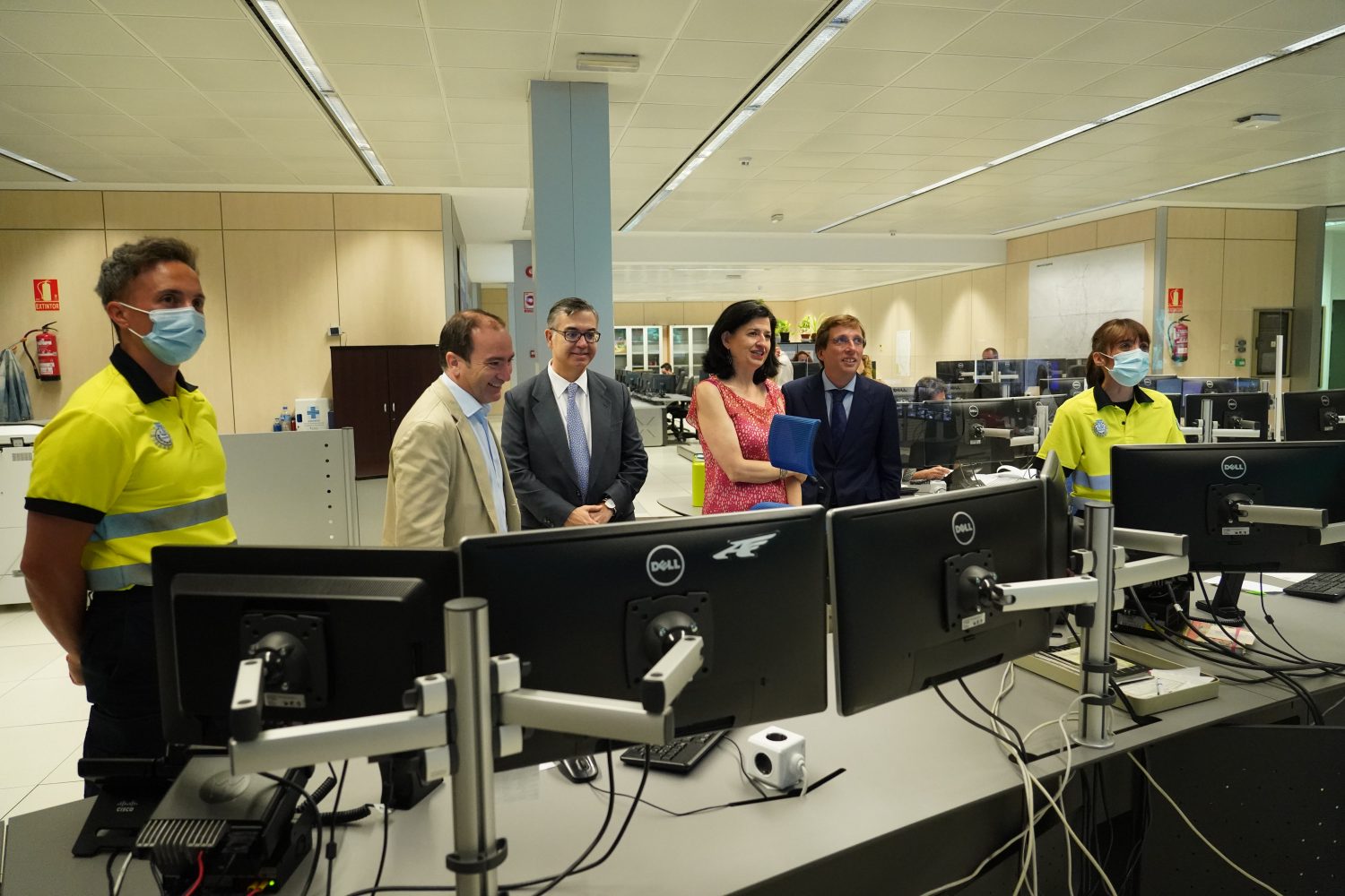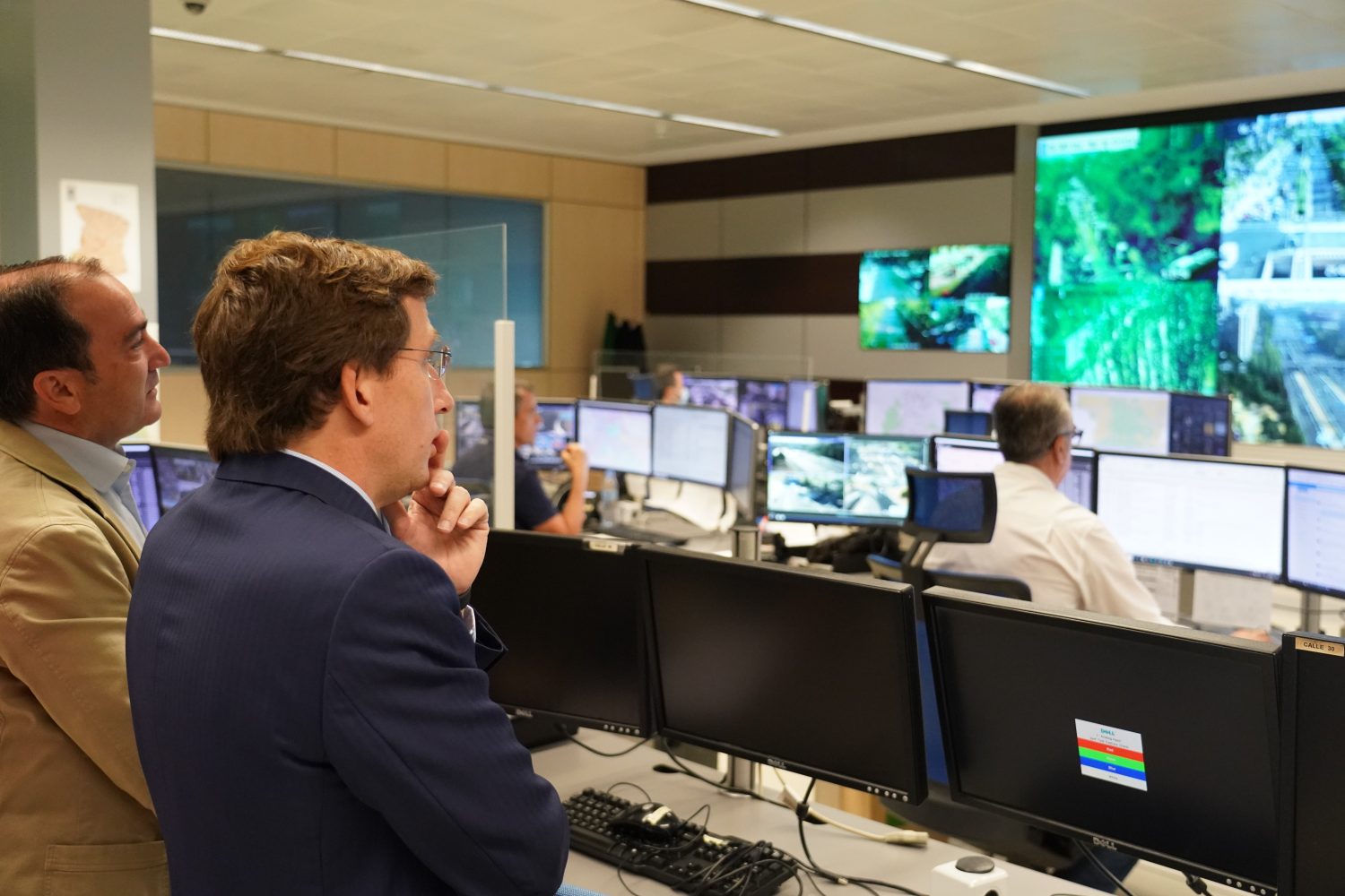 En la segunda jornada de la cumbre de la OTAN, la más crítica para la movilidad de la ciudad, el regidor madrileño, acompañado por el delegado de Medio Ambiente y Movilidad, Borja Carabante, ha comprobado a través de las 18 pantallas del CGM que conectan con las 306 cámaras situadas en las vías de la ciudad el acusado descenso del uso del vehículo privado en la hora punta de la mañana.