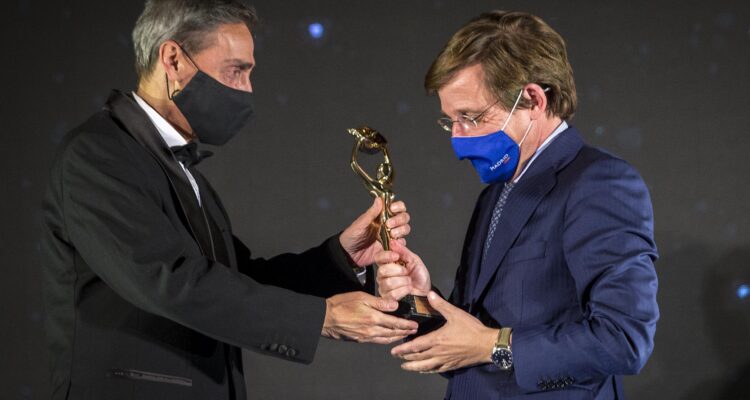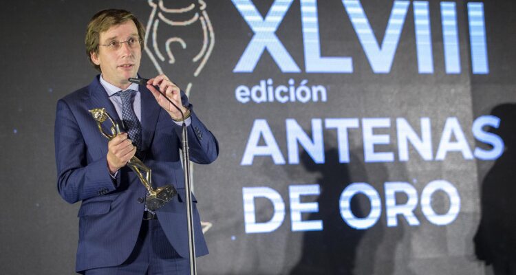 El alcalde de Madrid, José Luis Martínez-Almeida, ha recibido la Antena de Oro Política 2020, galardón de la Federación de Asociaciones de Radio y Televisión de España cuya gala se celebró anoche en la Galería de Cristal del Palacio de Cibeles. Almeida, que señaló la importancia de “ser cercano” en la comunicación con los ciudadanos y “dejar de hablar de politiqués y hablar más el lenguaje de la calle”, dijo entender el galardón “como un reconocimiento a la ciudad de Madrid por la capacidad de resistencia durante la pandemia” y porque “a pesar del drama que estábamos viviendo, nunca bajó el pulso y tuvo claro que quería recuperar el futuro”.