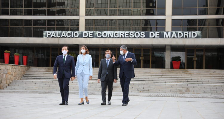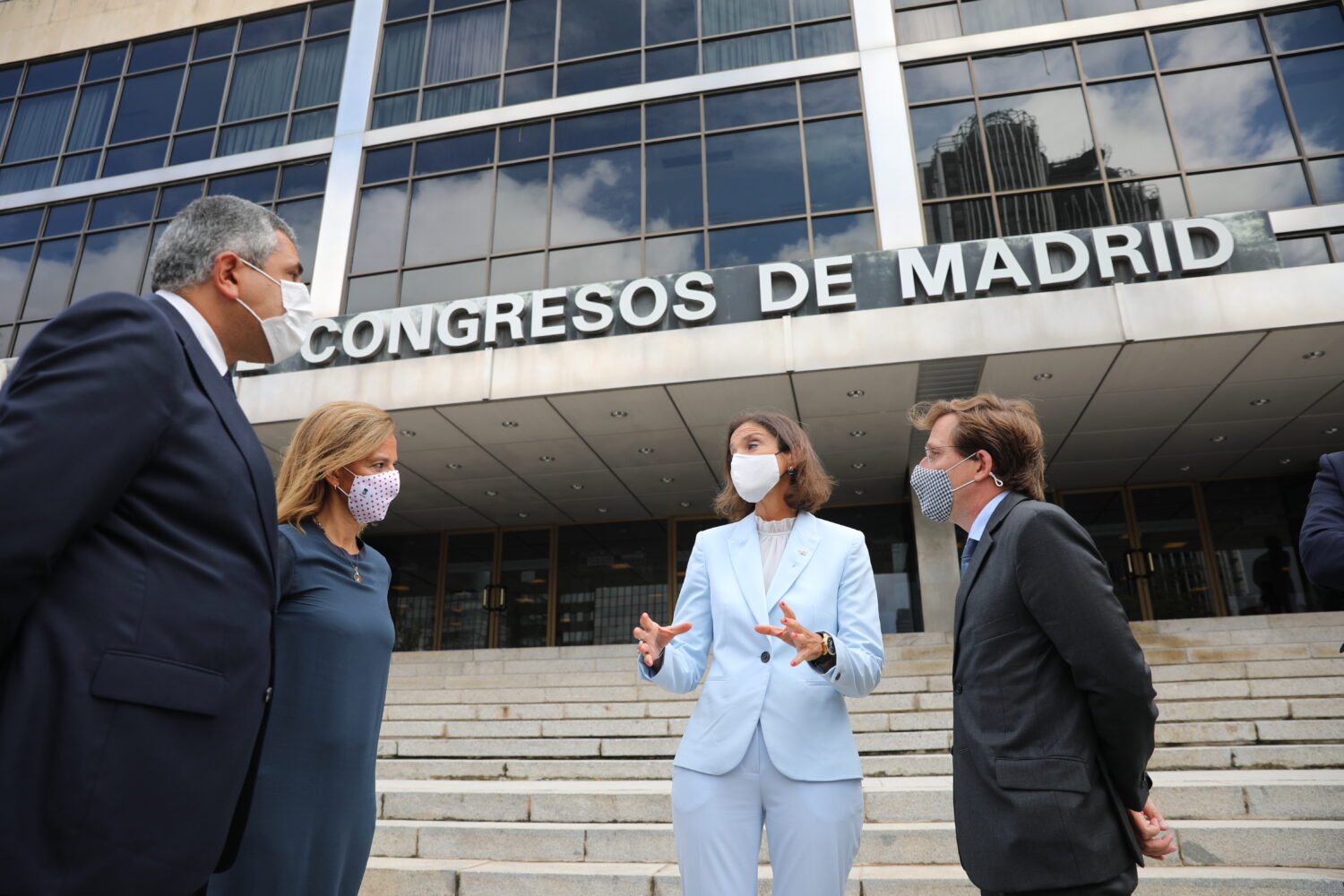 El alcalde de Madrid, José Luis Martínez-Almeida, ha visitado el Palacio de Congresos de la Castellana, futura sede de la Organización Mundial del Turismo (OMT), junto al ministro de Asuntos Exteriores, Unión Europea y Cooperación, José Manuel Albares; la ministra de Industria, Comercio y Turismo, Reyes Maroto, y el secretario general de la OMT, Zurab Pololikashvili. Almeida ha conocido el proyecto de reforma diseñado para remodelar el edificio que albergará las nuevas oficinas de la OMT. Un espacio, ha dicho el alcalde, que “tiene una ubicación privilegiada y que es un atractivo para el turismo de negocios, congresos y ferias de primer orden”.