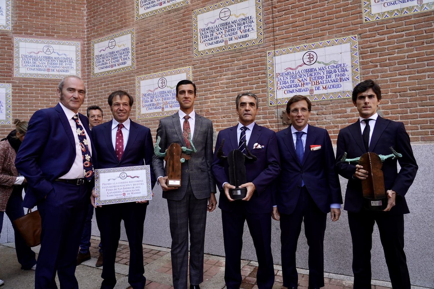 Además, Almeida ha puesto en valor “el excelente trabajo que desde el punto de vista medioambiental y de desarrollo económico realizan las ganaderías” al referirse al premiado con la corrida más completa, que ha recaído en la ganadería de Garcigrande, de Justo Hernández, y que ya tiene su azulejo en el patio de arrastre de la Plaza de Las Ventas. Asimismo, Ángel Téllez ha sido reconocido como el matador triunfador de la pasada feria donde, tal como ha recordado el alcalde, “conseguiste parar el tiempo y acelerar nuestros corazones con una faena que nos emocionó y nos llenó de orgullo por la técnica, la valentía y el arrojo con el que enfrentaste aquel momento que te permitió salir por la puerta grande”. /