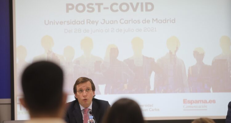 Declaraciones del alcalde, José Luis Martínez-Almeida, durante la inauguración del curso de verano ‘El futuro de los autónomos y emprendedores en la era Post-COVID’ en la Universidad Rey Juan Carlos
