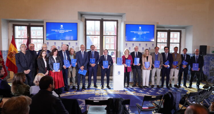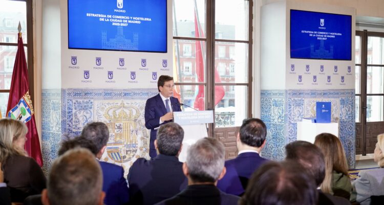 El alcalde de Madrid, José Luis Martínez-Almeida, ha presentado este martes la Estrategia Integral de Fortalecimiento de la Actividad Comercial y Hostelera de la ciudad de Madrid 2025-2027 en la Casa de la Panadería. Este proyecto, dotado con 95,4 millones de euros, nace para adaptar las políticas públicas a las nuevas realidades del sector y planificar medidas que fortalezcan su actividad. El documento parte de la escucha a todos los agentes sociales y de la colaboración entre organismos públicos, asociaciones empresariales, instituciones académicas, sindicatos y el Consejo Sectorial de Comercio y Hostelería municipal. Un plan “inspirado en el diálogo y fruto de un acuerdo de voluntades”, en palabras del alcalde.