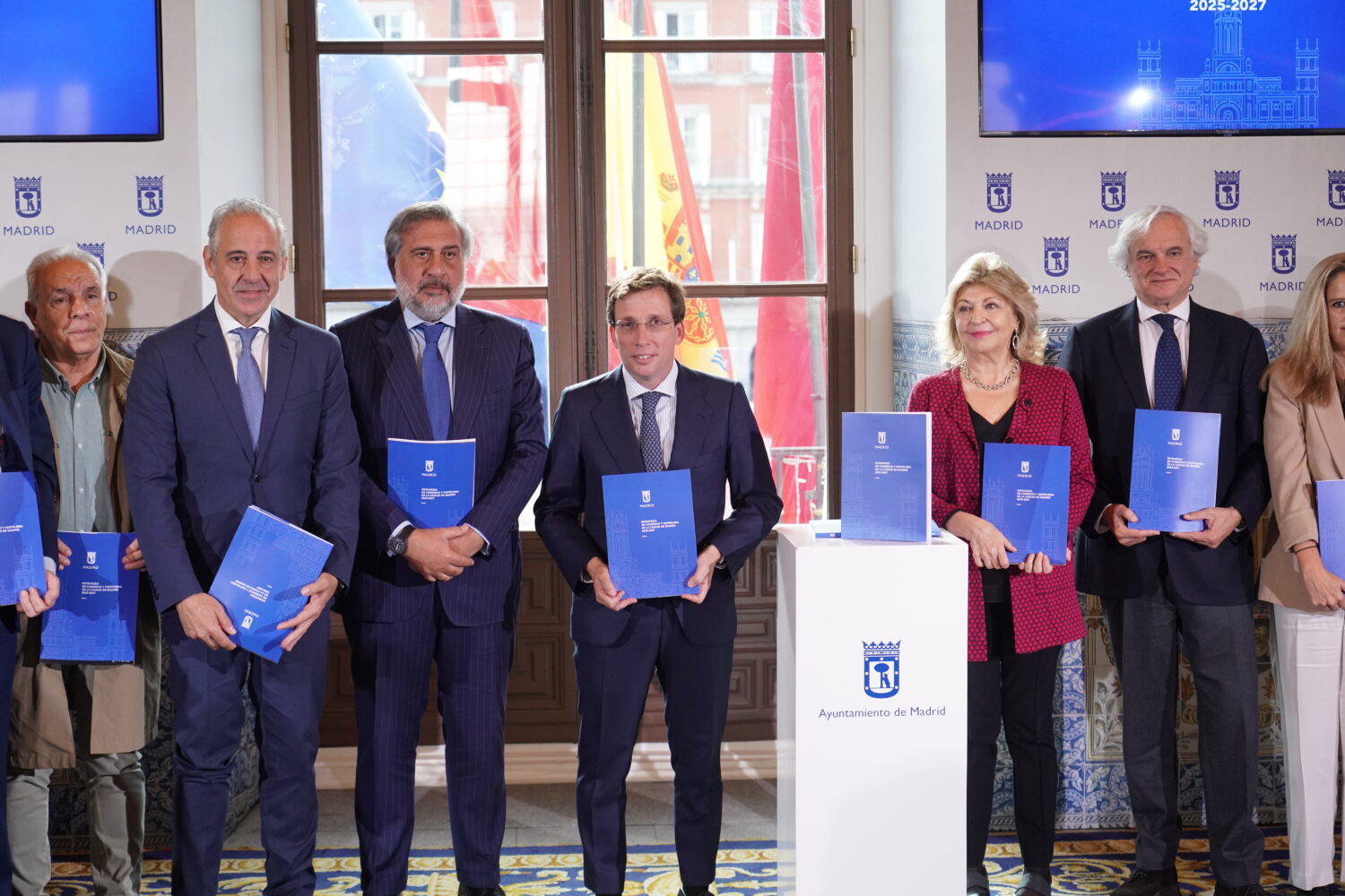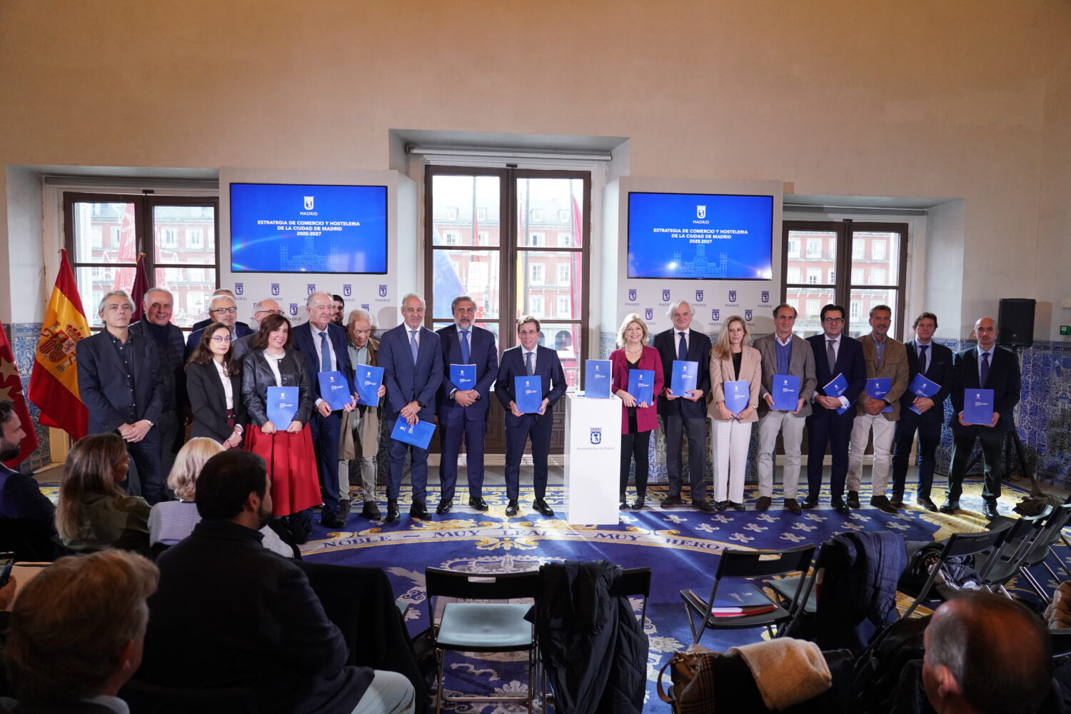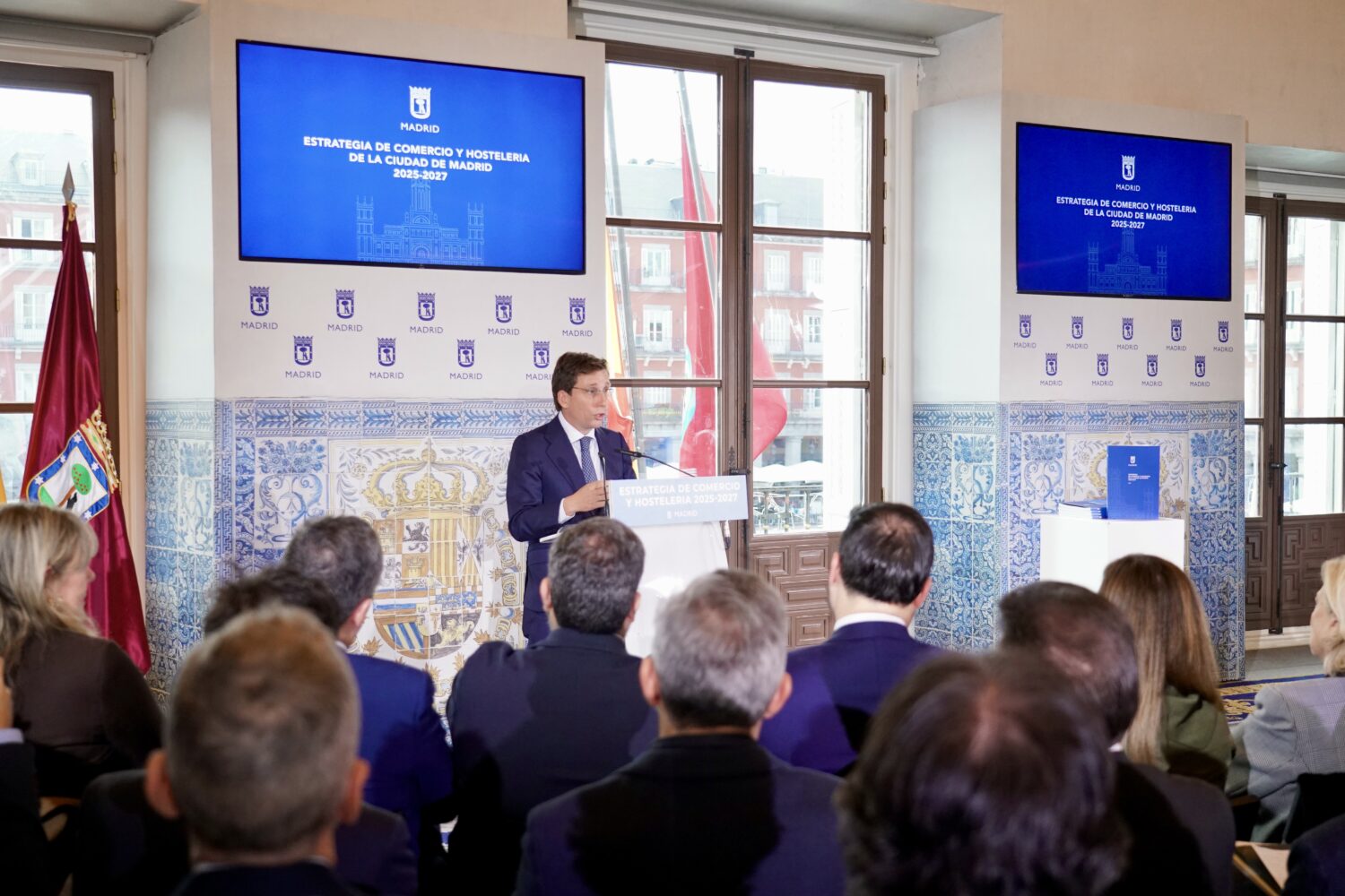 El alcalde de Madrid, José Luis Martínez-Almeida, ha presentado este martes la Estrategia Integral de Fortalecimiento de la Actividad Comercial y Hostelera de la ciudad de Madrid 2025-2027 en la Casa de la Panadería. Este proyecto, dotado con 95,4 millones de euros, nace para adaptar las políticas públicas a las nuevas realidades del sector y planificar medidas que fortalezcan su actividad. El documento parte de la escucha a todos los agentes sociales y de la colaboración entre organismos públicos, asociaciones empresariales, instituciones académicas, sindicatos y el Consejo Sectorial de Comercio y Hostelería municipal. Un plan “inspirado en el diálogo y fruto de un acuerdo de voluntades”, en palabras del alcalde.