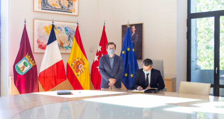 El alcalde de Madrid, José Luis Martínez-Almeida, ha mantenido esta tarde una reunión con el ministro del Interior de Francia, Gérald Darmanin, y el embajador de Francia en España, Jean-Michel Casa, en el Palacio de Cibeles. Al encuentro han asistido también por parte de la delegación francesa el ministro consejero de la Embajada de Francia, Gautier Lekens, y el consejero diplomático del ministro del Interior, Nicolas Pillerel, y por parte del Ayuntamiento, la delegada del Área de Portavoz, Seguridad y Emergencias, Inmaculada Sanz.