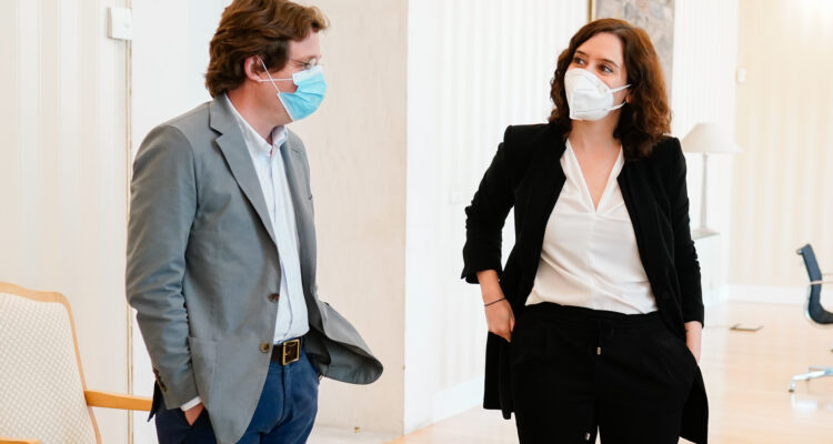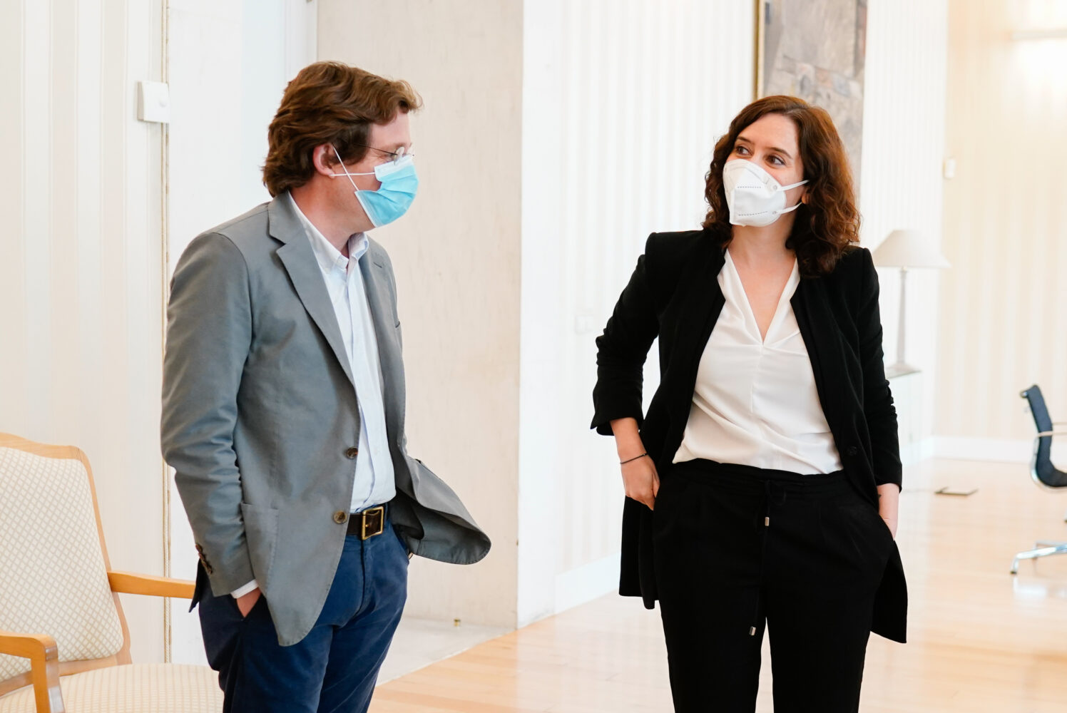 El alcalde de Madrid, José Luis Martínez-Almeida, acompañado por la delegada del Área de Gobierno de Portavoz, Seguridad y Emergencias, Inmaculada Sanz, ha mantenido este mediodía una reunión de trabajo con la presidenta de la Comunidad de Madrid, Isabel Díaz Ayuso, y el consejero de Sanidad, Enrique Ruiz-Escudero, para analizar la situación actual ante la crisis de la COVID-19 y coordinar los trabajos necesarios para afrontar la desescalada en Madrid.