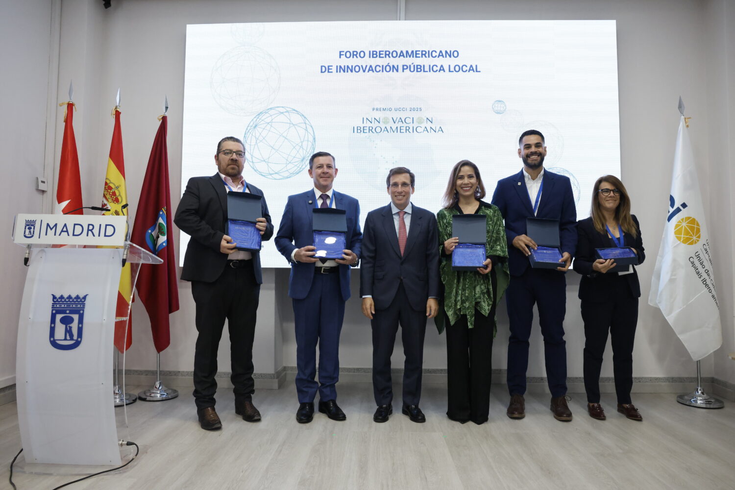 Almeida ha hecho entrega del Premio UCCI a la Innovación Iberoamericana 2025 a los representantes de las ciudades de Bogotá, Ciudad de México, San Juan, Montevideo y Sao Paulo, un galardón que busca reconocer iniciativas transformadoras, escalables y con impactos significativos en las ciudades iberoamericanas.