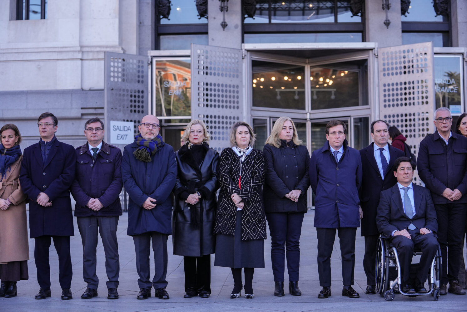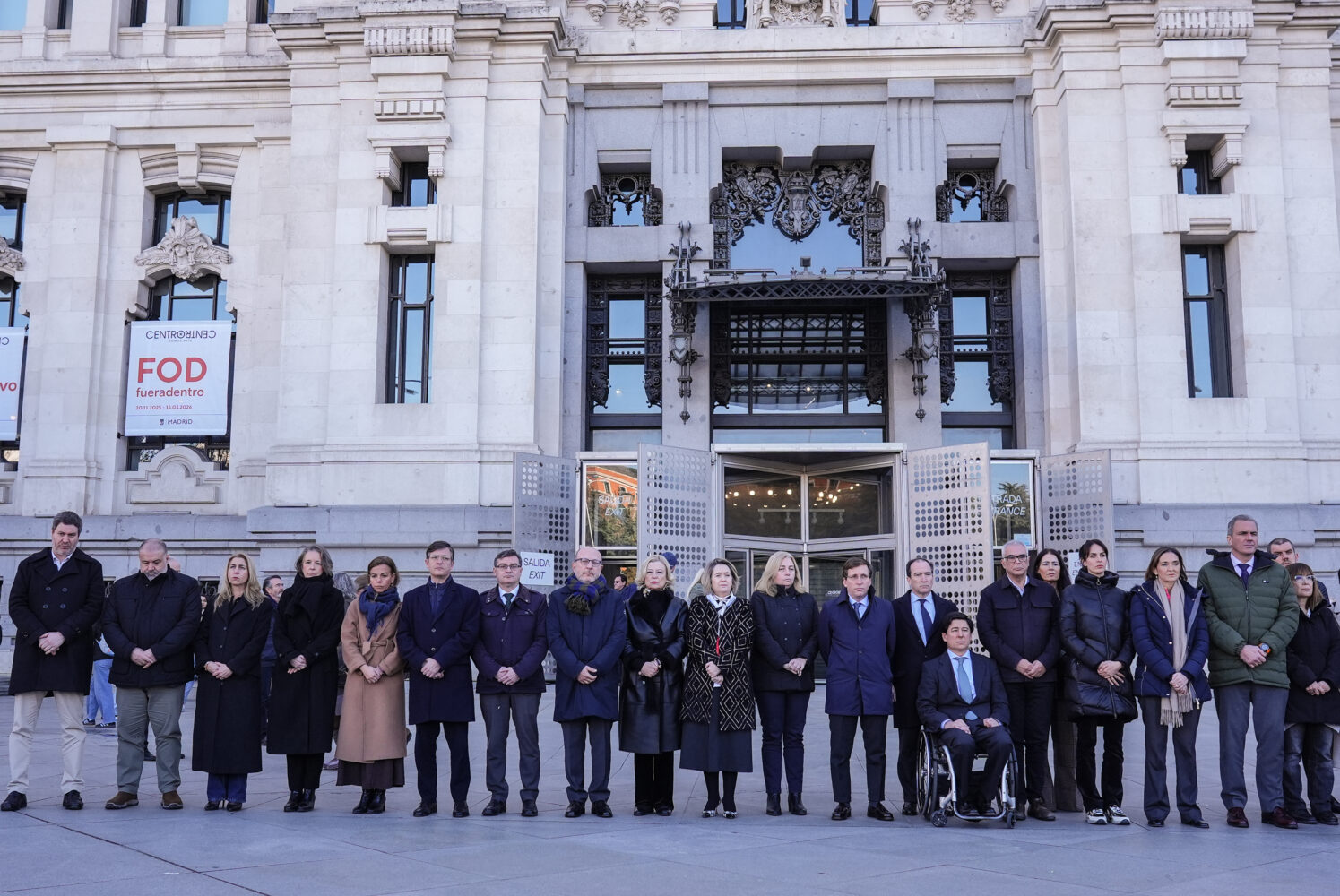 El alcalde de Madrid, José Luis Martínez-Almeida, ha presidido el minuto de silencio convocado por el Ayuntamiento, a las puertas del Palacio de Cibeles, en memoria de los fallecidos en el accidente ferroviario de Adamuz (Córdoba) y como muestra de apoyo y cariño hacia los heridos y sus familias.