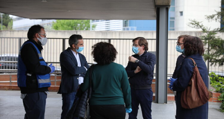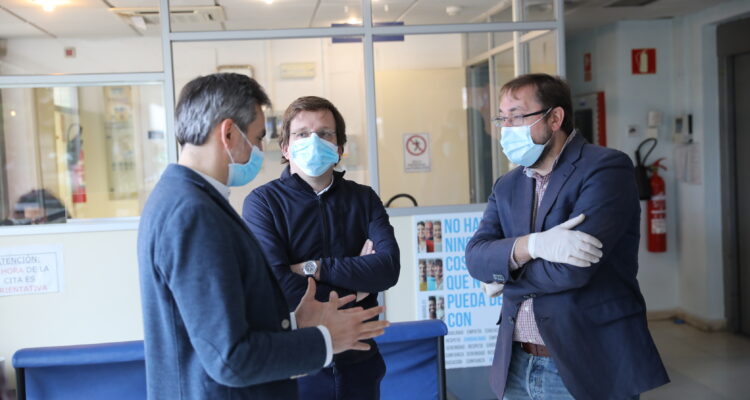 El alcalde de Madrid, José Luis Martínez-Almeida, acompañado del delegado del Área de Familias, Igualdad y Bienestar Social, Pepe Aniorte, y el concejal del distrito de Hortaleza, Alberto Serrano, ha visitado esta mañana el Centro de Servicios Sociales Concepción Arenal que está dando cobertura a las emergencias derivadas de la actual crisis sanitaria como mayores solos sin red familiar, falta de recursos económicos, desprotección de menores, cobertura de necesidades básicas y acompañamiento social.