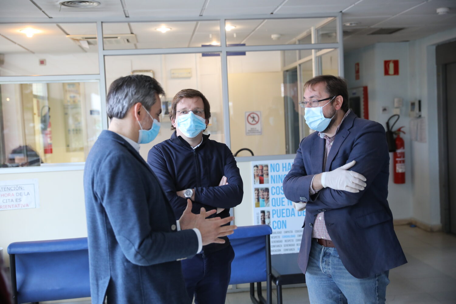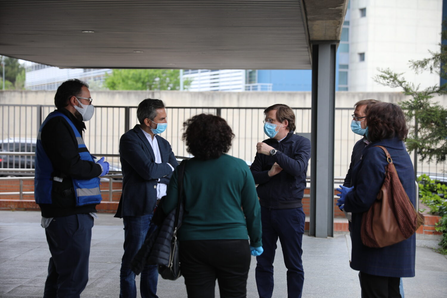 El alcalde de Madrid, José Luis Martínez-Almeida, acompañado del delegado del Área de Familias, Igualdad y Bienestar Social, Pepe Aniorte, y el concejal del distrito de Hortaleza, Alberto Serrano, ha visitado esta mañana el Centro de Servicios Sociales Concepción Arenal que está dando cobertura a las emergencias derivadas de la actual crisis sanitaria como mayores solos sin red familiar, falta de recursos económicos, desprotección de menores, cobertura de necesidades básicas y acompañamiento social.