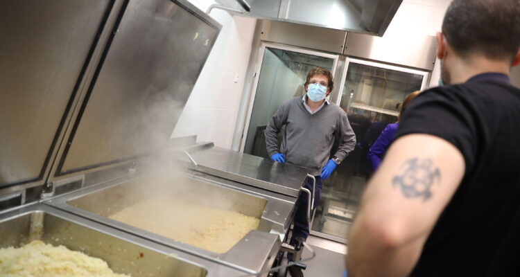 El alcalde de Madrid, José Luis Martínez-Almeida, ha visitado hoy la cocina del hotel ‘Four Seasons’ desde donde se reparten 1.000 comidas diarias entre las personas más necesitadas de nueve distritos de la capital. Los menús se servirán de lunes a domingo durante todo el mes de mayo con posibilidad de prorrogar este servicio hasta mediados de junio.