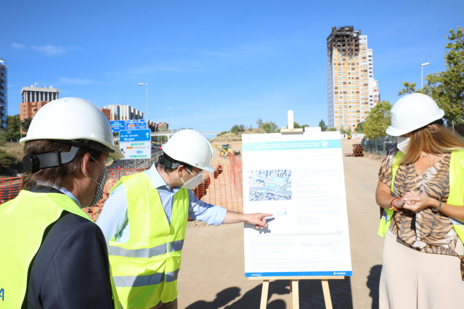 El alcalde de Madrid, José Luis Martínez-Almeida, junto con el delegado del Área de Medio Ambiente y Movilidad, Borja Carabante, y el concejal de Hortaleza, Alberto Serrano, ha comprobado esta mañana el estado de las obras del aparcamiento disuasorio de Fuente de la Mora, cuya construcción comenzó en agosto a la par que el aparcamiento de Pitis, situado en el distrito de Fuencarral-El Pardo. El Área de Medio Ambiente y Movilidad ha destinado una inversión de 1,2 y 1,6 millones de euros, respectivamente, para cada uno de ellos.