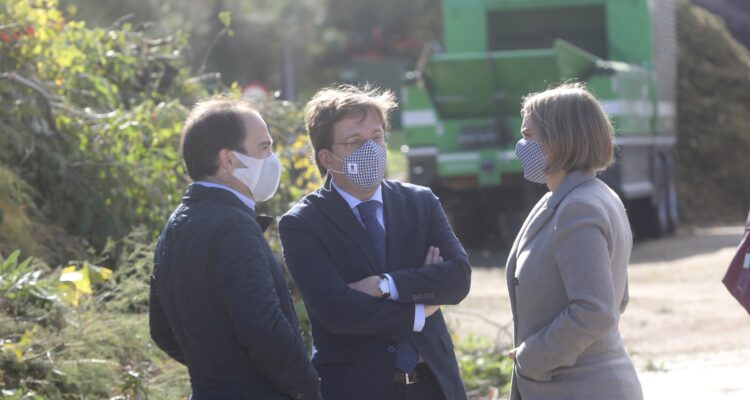 El alcalde de Madrid, José Luis Martínez-Almeida, acompañado por el delegado de Medio Ambiente y Movilidad, Borja Carabante, y la concejala del distrito de Moncloa-Aravaca, Loreto Sordo, ha visitado este lunes la planta de compostaje de Migas Calientes con motivo del inicio de la campaña de recogida de la hoja en la ciudad, que este año va a contar con el mayor refuerzo de personal desde que funcionan los contratos integrales: 1.879 efectivos más, 91 barredoras y 14 camiones con dispositivo de aspiración de hojas. Esta cifra supone un 9 % más de operarios que el año pasado, cuando se redujeron los avisos vecinales por este motivo más de un 40 %. En la campaña del año 2018 se registraron un total de 1.489 quejas y en la de 2019 esta cifra disminuyó hasta 825.