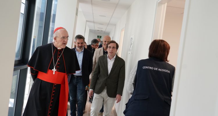El alcalde de Madrid, José Luis Martínez-Almeida, junto al cardenal de la Archidiócesis de Madrid, Carlos Osoro, ha visitado hoy el centro municipal Beatriz Galindo para mujeres sin hogar víctimas de violencia de género, el primero de este tipo en España.