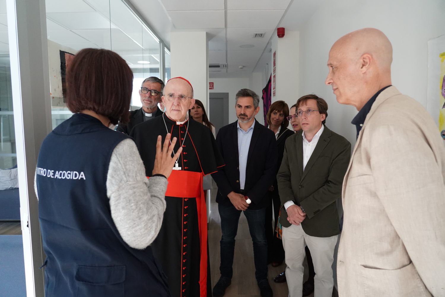 El alcalde de Madrid, José Luis Martínez-Almeida, junto al cardenal de la Archidiócesis de Madrid, Carlos Osoro, ha visitado hoy el centro municipal Beatriz Galindo para mujeres sin hogar víctimas de violencia de género, el primero de este tipo en España.