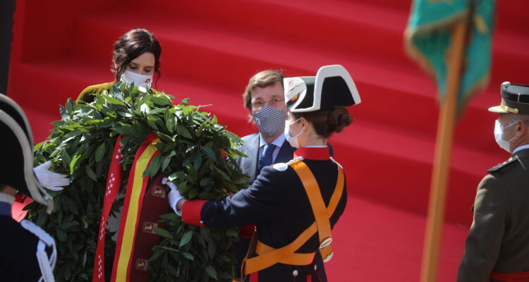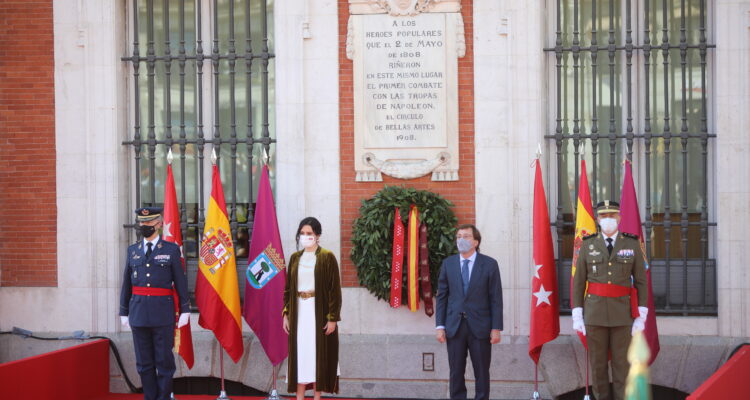 El alcalde de Madrid, José Luis Martínez-Almeida, y la vicealcaldesa, Begoña Villacís, han participado en los actos con motivo de la celebración del Día de la Comunidad de Madrid. Ambos han asistido al acto cívico-militar en homenaje a los Héroes del Dos de Mayo de 1808 en el que el alcalde y la presidenta de la Comunidad de Madrid, Isabel Díaz Ayuso, han depositado una corona de laurel ante la placa conmemorativa, situada en la fachada de la sede del Gobierno regional.