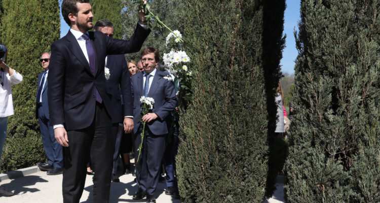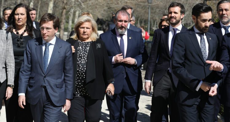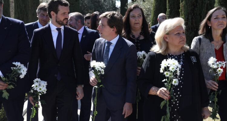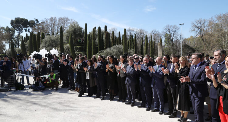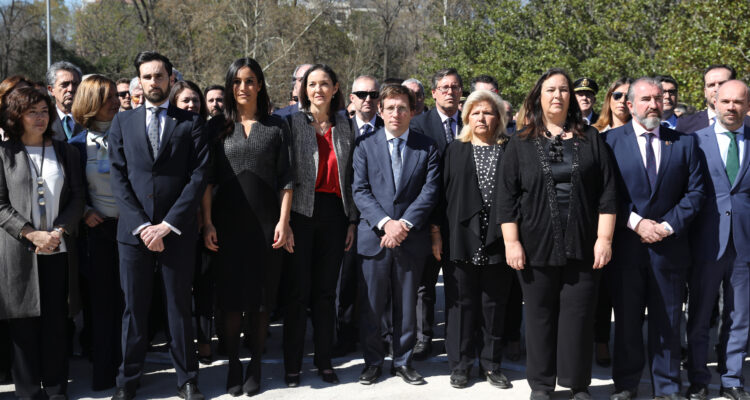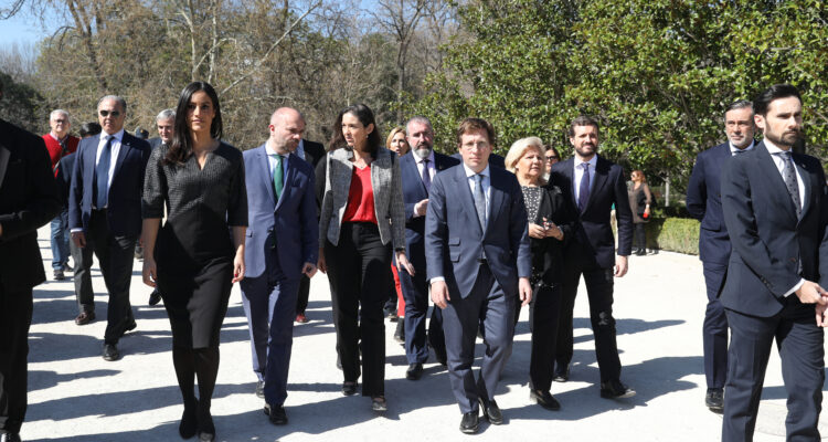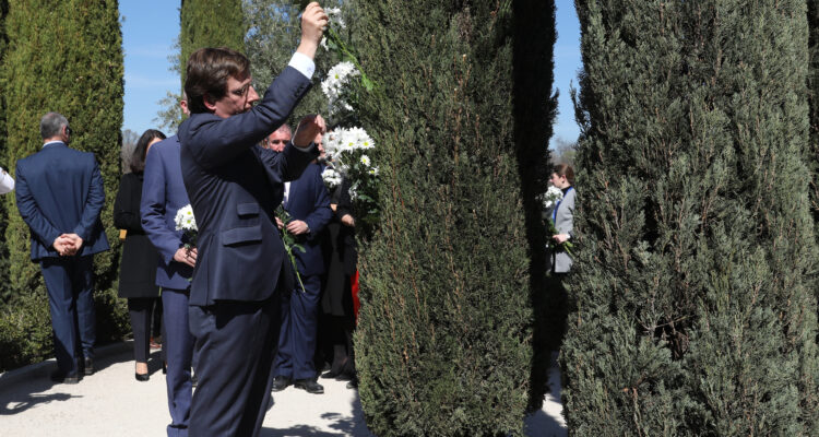 El alcalde de Madrid, José Luis Martínez-Almeida, y la vicealcaldesa, Begoña Villacís, han asistido este mediodía al acto de conmemoración del Día Europeo de las Víctimas del Terrorismo que se ha celebrado en el Bosque del Recuerdo del parque de El Retiro, organizado por la Asociación de Víctimas del Terrorismo (AVT). El Parlamento Europeo instauró este día para el recuerdo tras los atentados que sufrió Madrid el 11M de 2004.