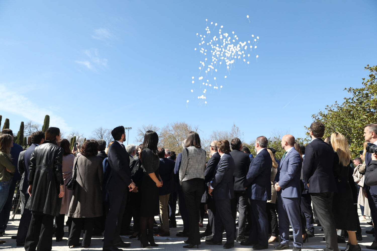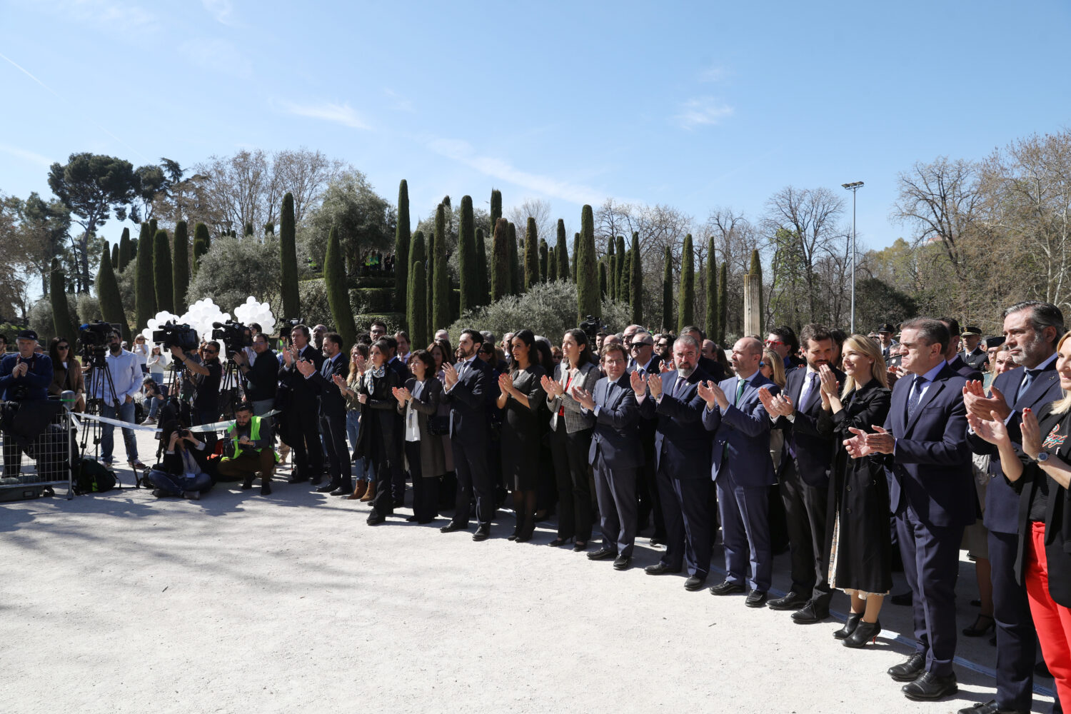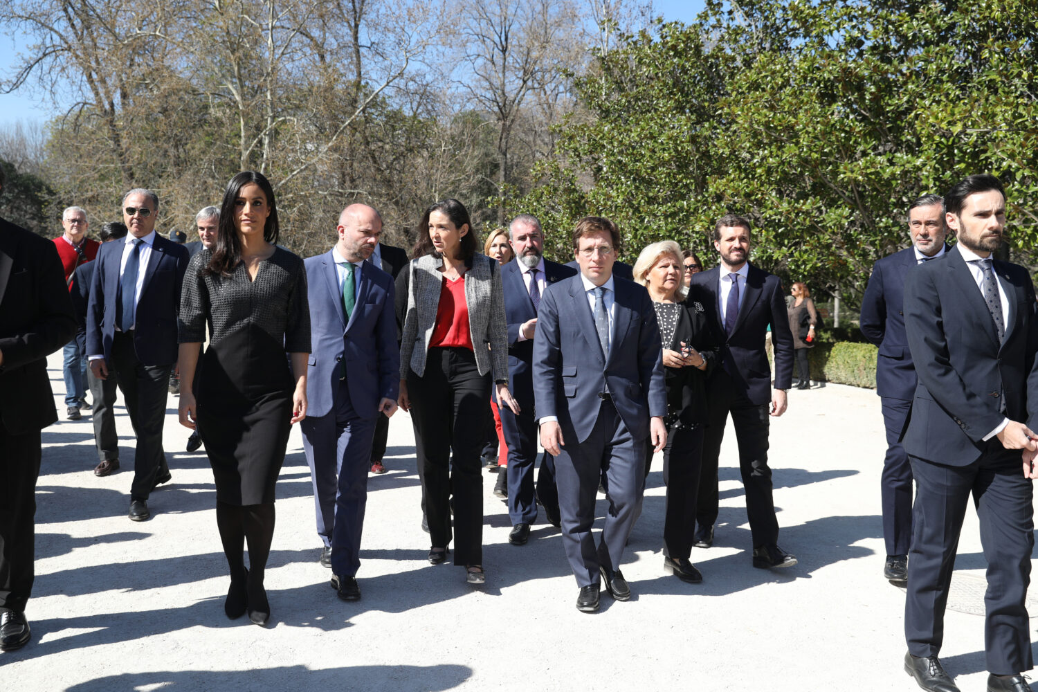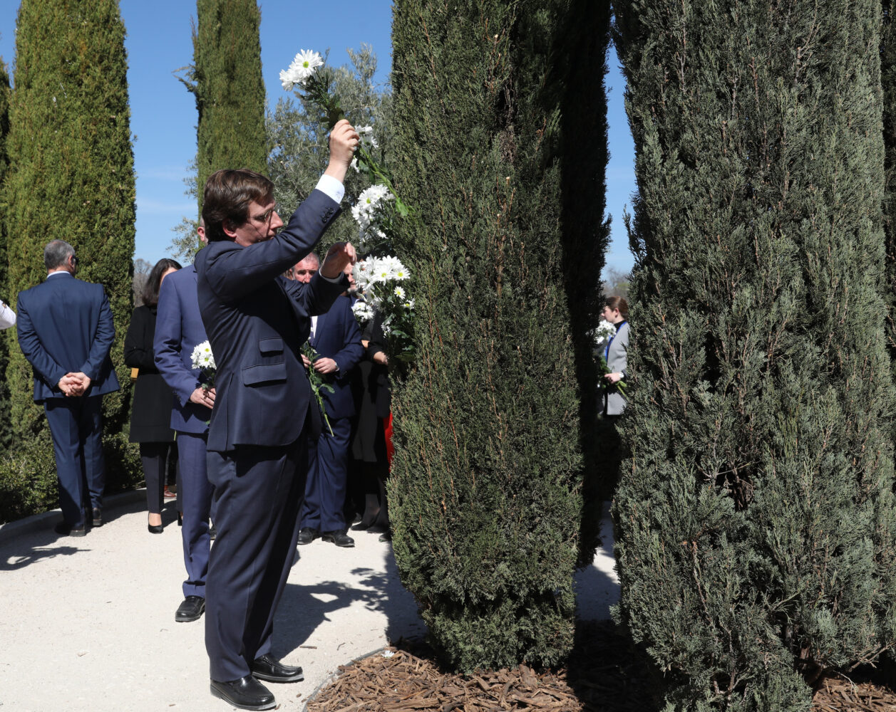 El alcalde de Madrid, José Luis Martínez-Almeida, y la vicealcaldesa, Begoña Villacís, han asistido este mediodía al acto de conmemoración del Día Europeo de las Víctimas del Terrorismo que se ha celebrado en el Bosque del Recuerdo del parque de El Retiro, organizado por la Asociación de Víctimas del Terrorismo (AVT). El Parlamento Europeo instauró este día para el recuerdo tras los atentados que sufrió Madrid el 11M de 2004.