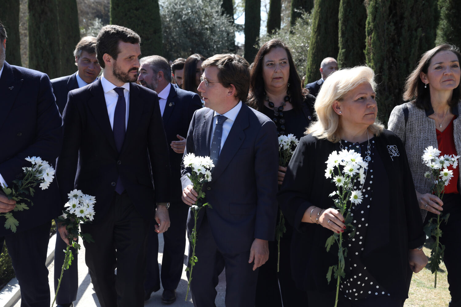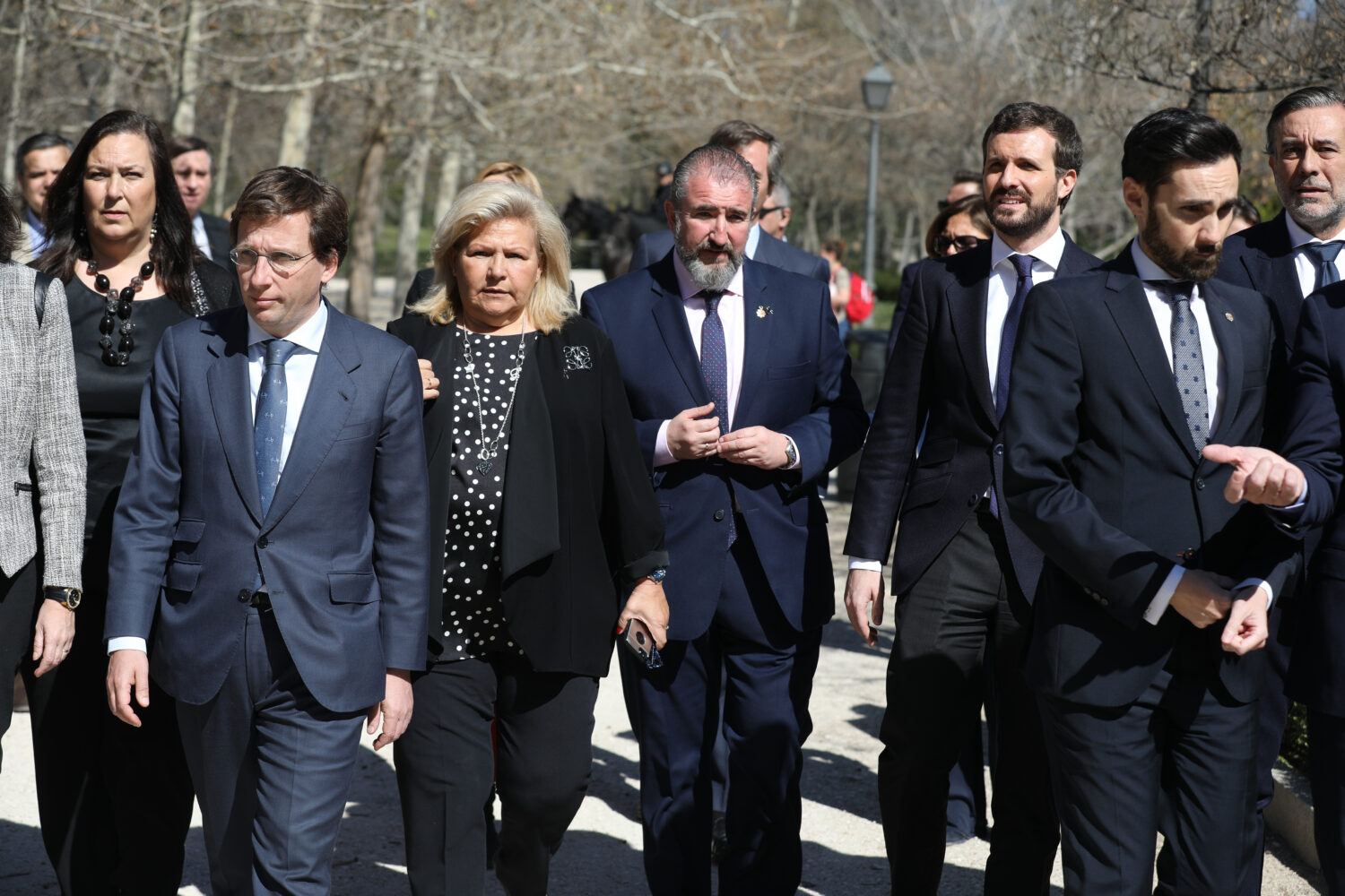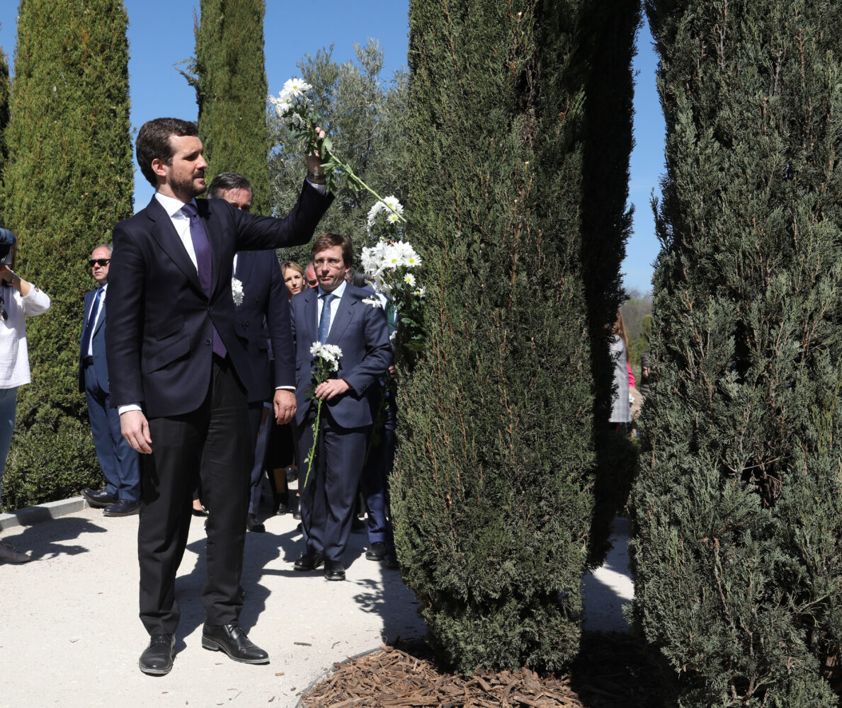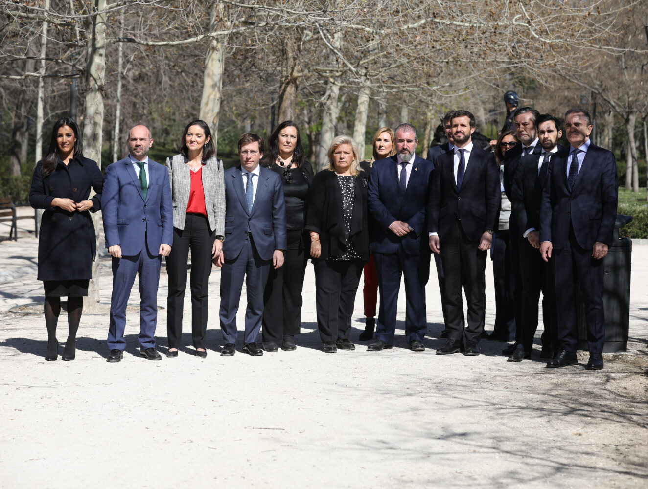 El alcalde de Madrid, José Luis Martínez-Almeida, y la vicealcaldesa, Begoña Villacís, han asistido este mediodía al acto de conmemoración del Día Europeo de las Víctimas del Terrorismo que se ha celebrado en el Bosque del Recuerdo del parque de El Retiro, organizado por la Asociación de Víctimas del Terrorismo (AVT). El Parlamento Europeo instauró este día para el recuerdo tras los atentados que sufrió Madrid el 11M de 2004.