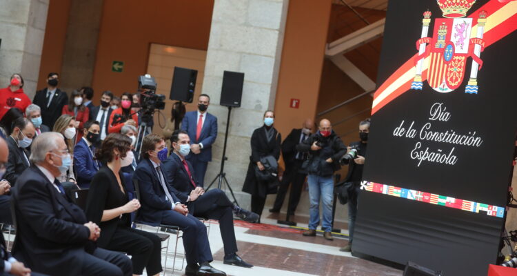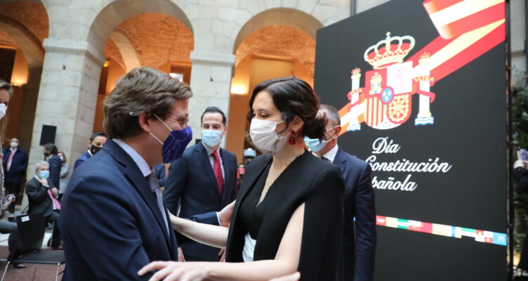 El alcalde de Madrid, José Luis Martínez-Almeida, junto a la vicealcaldesa, Begoña Villacís, ha asistido esta mañana en la Real Casa de Correos, sede del Gobierno de la Comunidad de Madrid, al acto de celebración del 42 aniversario de la Constitución Española, presidido por la jefa del Ejecutivo regional, Isabel Díaz Ayuso, y en el que también ha participado el delegado del Gobierno, José Manuel Franco.