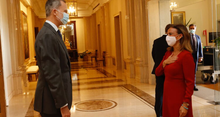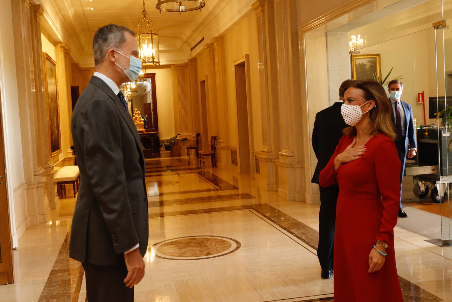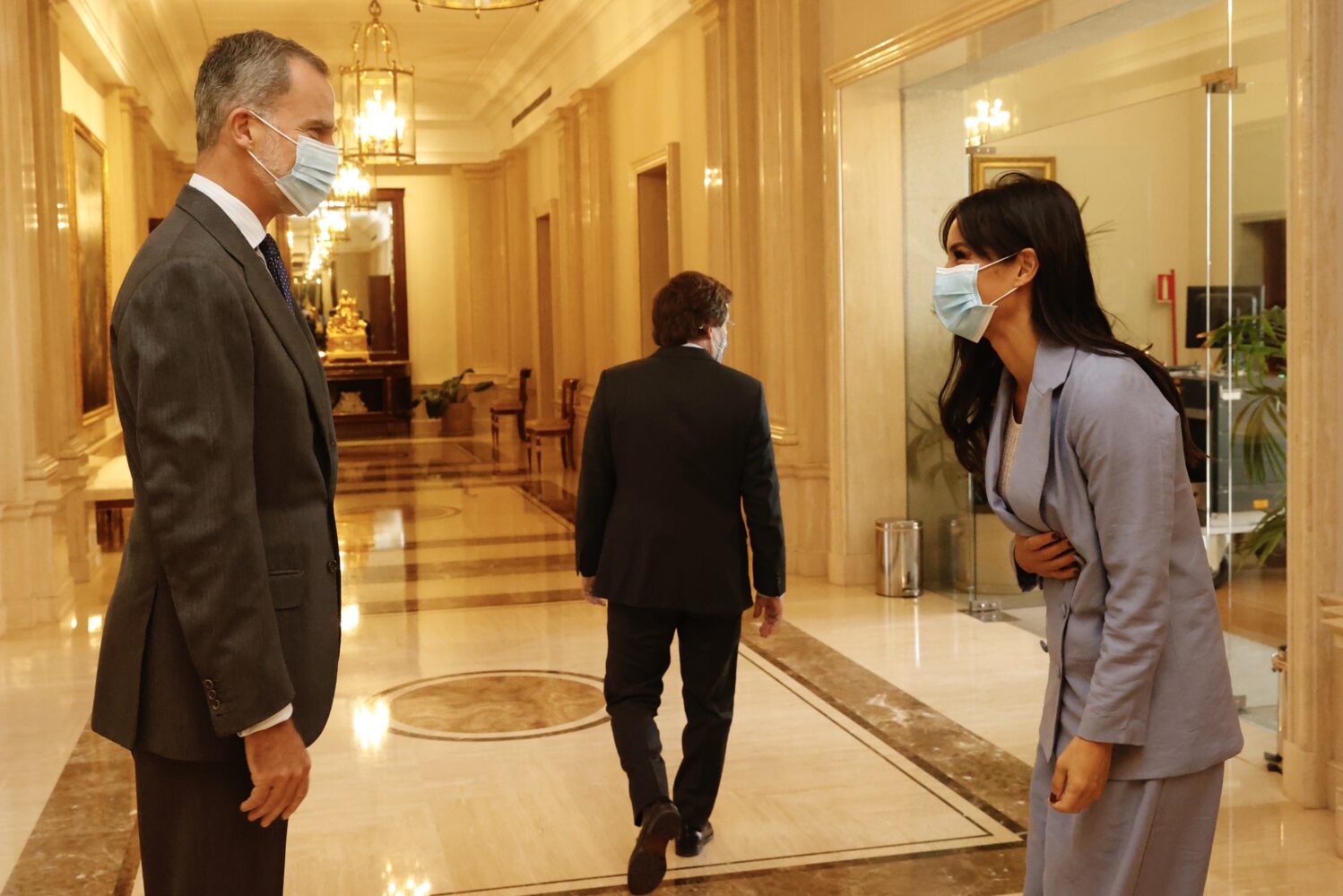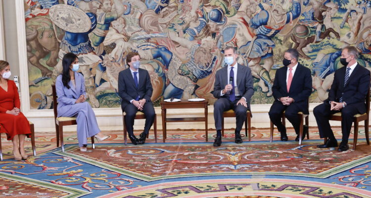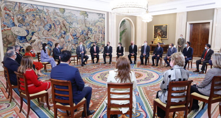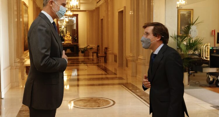 El alcalde de Madrid y copresidente de la Unión de Ciudades Capitales Iberoamericanas (UCCI), José Luis Martínez-Almeida; la vicealcaldesa, Begoña Villacís, y la secretaria general de la UCCI, Almudena Maíllo, han sido recibidos este viernes en audiencia por el rey Felipe VI en el Palacio de La Zarzuela junto con los miembros de la XIX Asamblea de la UCCI que se ha celebrado en Madrid.