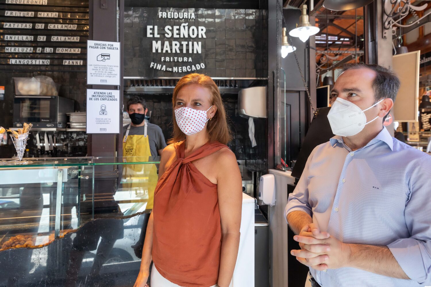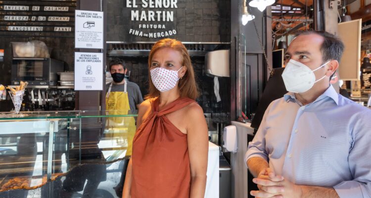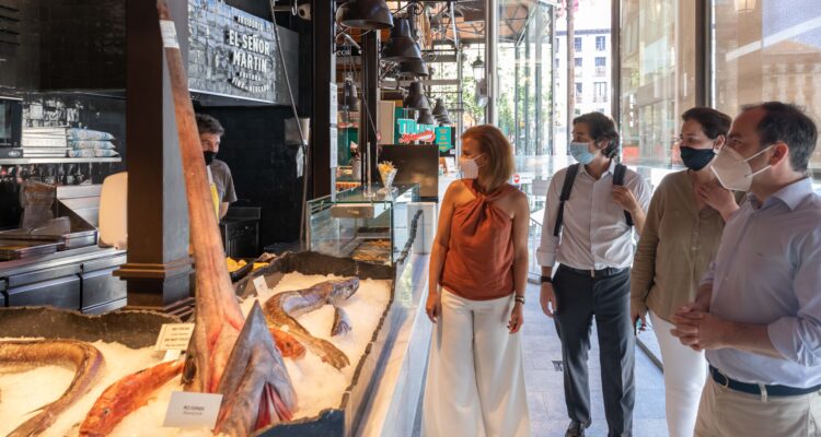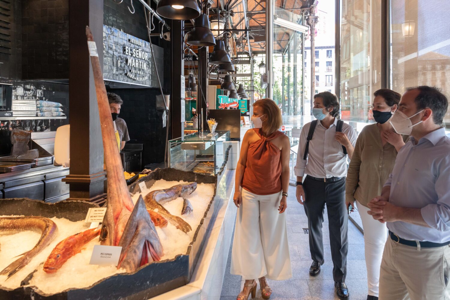 La concejala delegada de Turismo del Ayuntamiento de Madrid, Almudena Maíllo, ha visitado esta mañana el Mercado de San Miguel, que abre de nuevo sus puertas para continuar ofreciendo a ciudadanos y visitantes una de las mejores propuestas gastronómicas de la capital. En su recorrido, ha estado acompañada por el director general de Redevco (empresa propietaria del mercado), Israel Casanova; y la directora del Mercado de San Miguel, Sandra Acevedo.