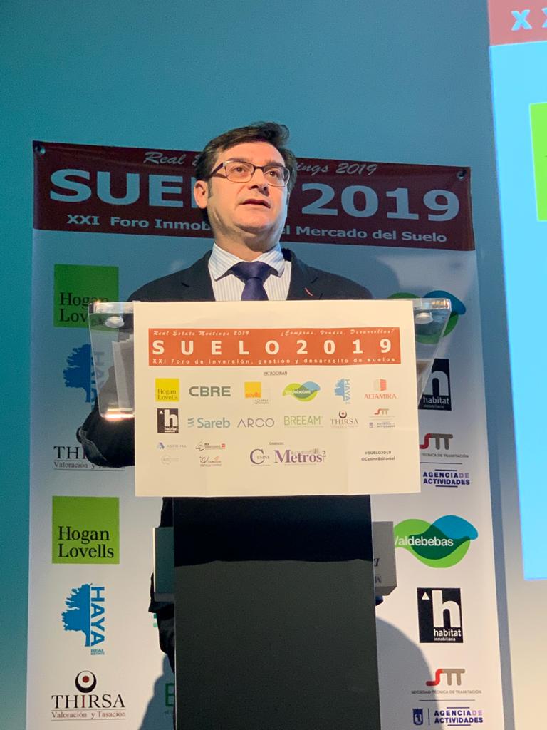 hagamos del suelo son fundamentales”. Con estas palabras, el concejal delegado del Área de Vivienda, Álvaro González, ha comenzado su intervención en el XXI Foro de Directores de Suelo y Urbanismo organizado por Cesine y la revista Metros2, donde ha entregado el Premio Suelo 2019.