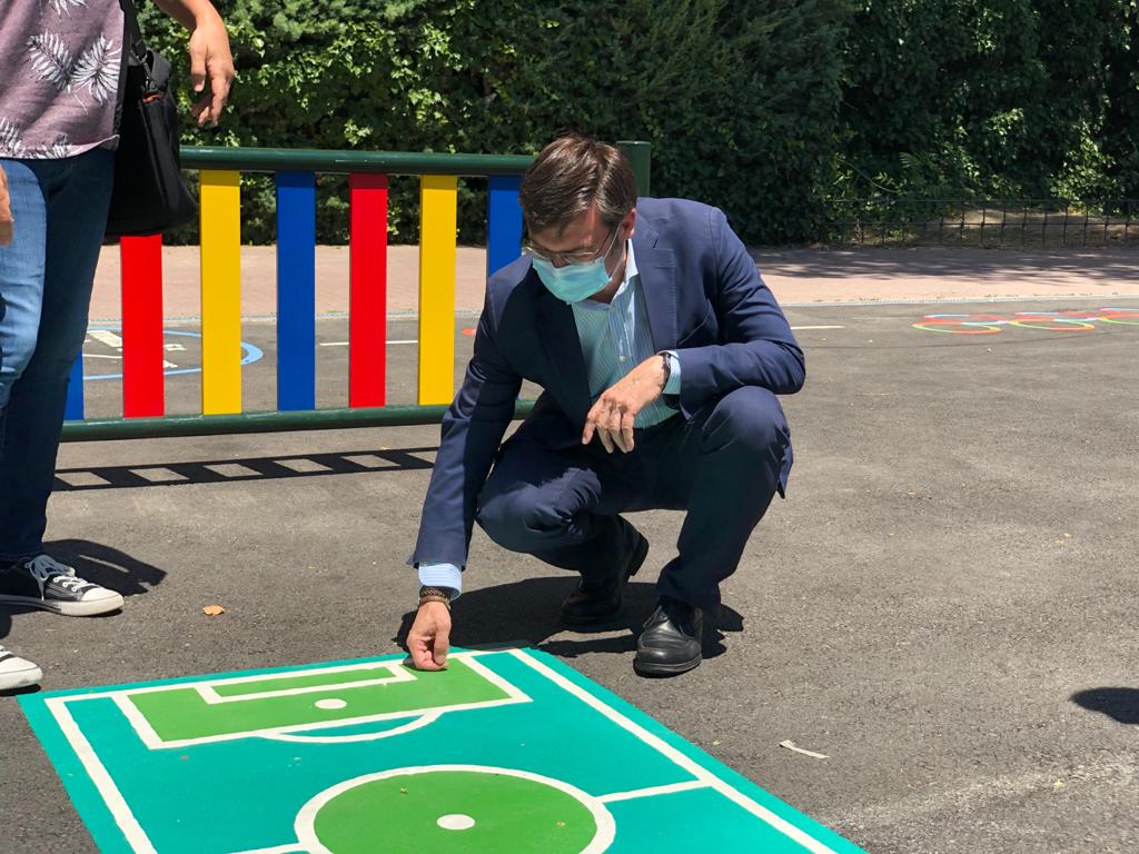 • Plataforma de juego entre pistas: se han retirado las mesas de pimpón, que estaban muy deterioradas, y se ha realizado la repavimentación de este espacio, habilitándolo con una pista de recorrido deportivo y juegos de chapas para los más pequeños.