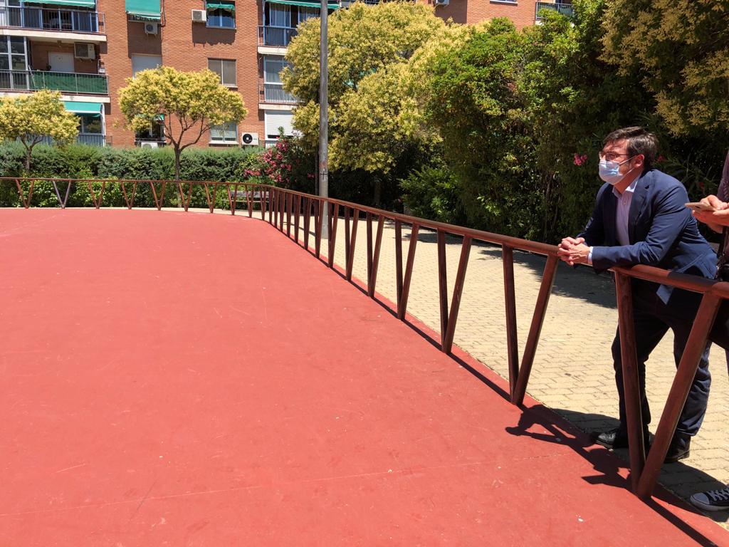 El concejal de Carabanchel, Álvaro González, ha visitado esta mañana la Instalación Deportiva Municipal Básica Jacinto Verdaguer, ubicada en la confluencia de esta vía con la calle de la Verdad, donde se están llevando a cabo las obras de mejora y renovación que subsanarán el deterioro que presenta esta zona.