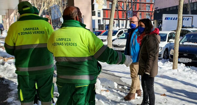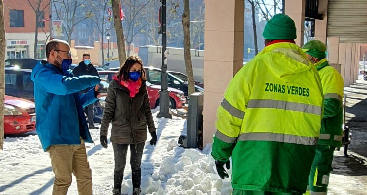 La delegada del Área de Cultura, Turismo y Deporte, Andrea Levy, ha visitado junto al concejal del distrito de Centro, José Fernández, y los presidentes de la Asociación de Comerciantes Nuevo Rastro y la Asociación de Vecinos del Rastro, esta zona comercial del distrito de Centro tras el temporal de nieve de los pasados días.